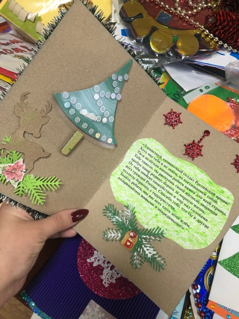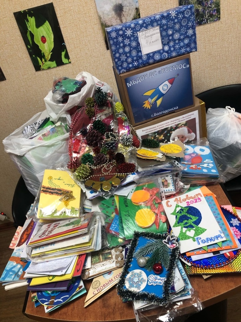 Как сообщает группа «Молодежь Волгодонска», на протяжении недели жители города – воспитанники детских садов, учреждений культуры, ученики школ, техникумов и институтов – изготавливали новогодние открытки с поздравлениями военнослужащим ВС РФ, а также праздничные гирлянды, которыми украсят места дислокации, наполнив их уютом и заботой.
