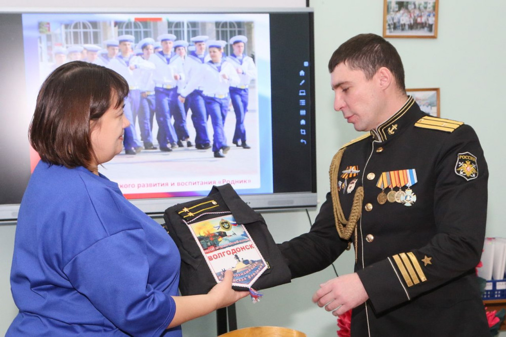 Позже моряки посетили школу №8 «Классическую», где на протяжении трех лет действует центр подготовки к военной службе и военно-патриотического воспитания молодежи «Родник». На эту встречу также приехали учащиеся восьмых классов лицея «Политэк», где при поддержке Ростовской АЭС вот уже 15 лет работает школьный клуб моряков-подводников.