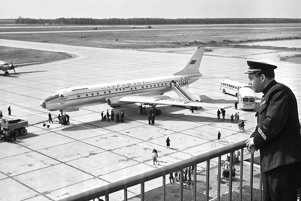 1959 год. Первый советский реактивный самолет Ту-104Б. Только что завершился рейс из Ленинграда в Москву. Фото: РИА Новости