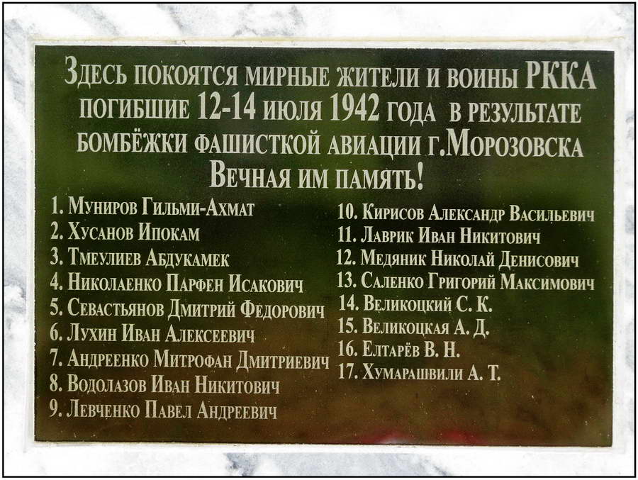 За полгода оккупации было убито более 1500 местных жителей. Около 5000 бойцов погибли освобождая Морозовский район, из них 1800 — в битвах за Морозовск.
