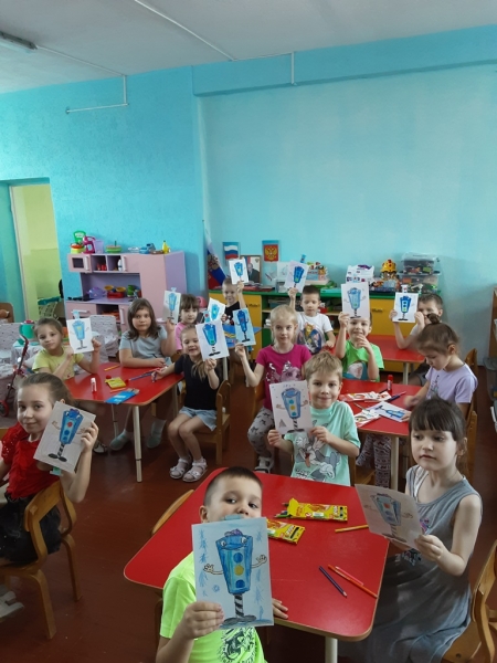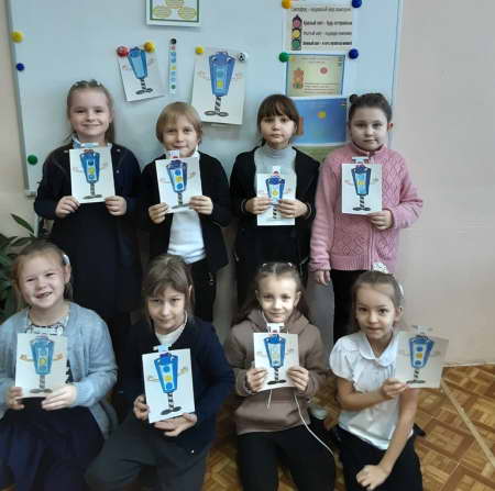 В изготовлении модели светофора приняли участие 30 дошкольников из д\с «Уголек» и 24 ученика 1-2-х классов «Центра образования» и школы №5. По окончанию занятия все ребята получили памятки по безопасности на дорогах.