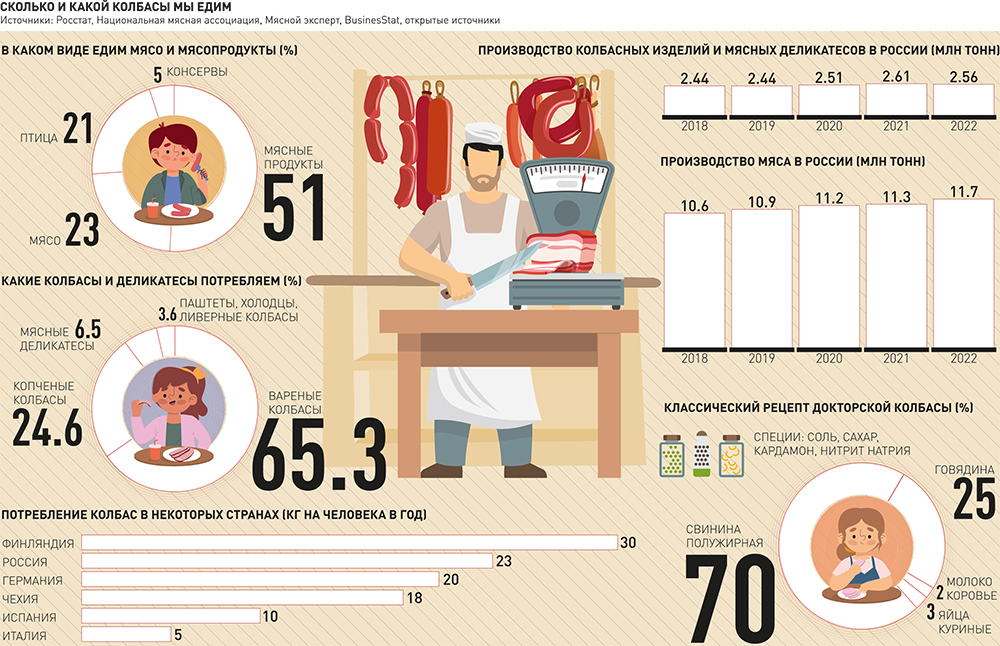 Колбаса в России — своего рода барометр ситуации в экономике. В кризис ее потребление всегда растет