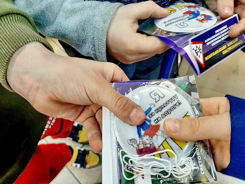 Ребята из объединения «Юный инспектор движения» тоже присоединились к разъяснительной работе. Начали они эту работу с «населения» Учебно-тренировочного комплекса Станции юных техников. Они рассказали ребятам из других творческих объединений, как переходить дорогу по пешеходному переходу, что делать, если его поблизости нет; напомнили о важности использования ремней безопасности и детских удерживающих устройств при поездках в автомобиле; рассказали о пользе ношения светоотражающих элементов и их роли в безопасности пешеходов. А в конце беседы ребята подарили светоотражающие значки своим благодарным слушателям.