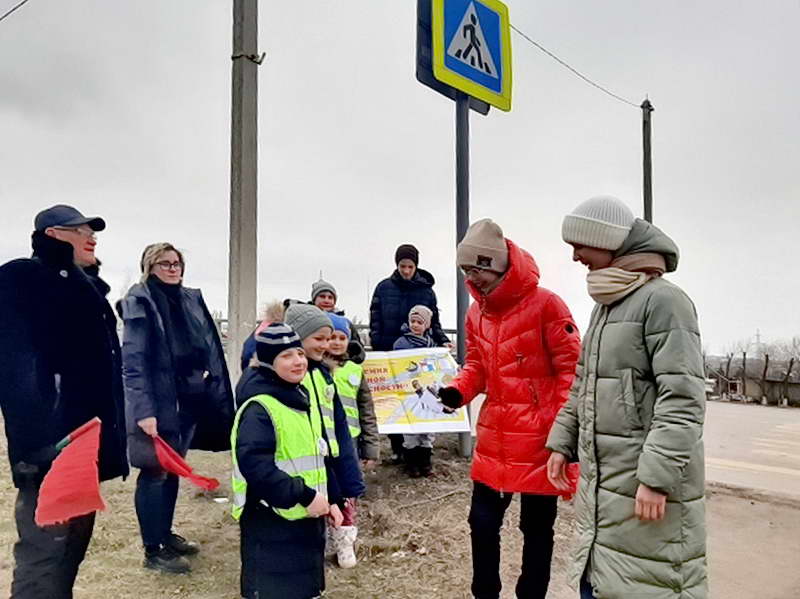 Также ребята вместе с педагогами Учебно-тренировочного комплекса и родителями 22 января прошли на нерегулируемый пешеходный переход, расположенный на улице Весенней – именно перейдя по нему, можно попасть в учреждение. Там они рассказали встреченным пешеходам, как нужно правильно переходить нерегулируемый переход и также раздали светоотражающие значки.
