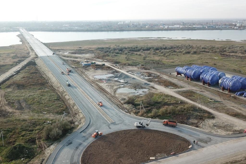 Демонтирован временный мост, который возводили для сооружения опор мостового перехода через балку. Выполнено устройство нижнего слоя дорожной одежды на подходах к переправе от улицы Набережной (в створе проспекта Лазоревого).