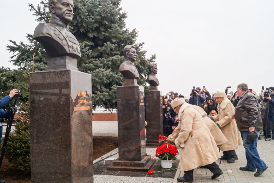 Учитель истории Виталий Мацаков приехал из далекого Ямала, из маленького поселка Заполярный — наконец осуществил давнюю мечту побывать в городе-герое. Ведь в его семье сразу четыре деда (родной и трое двоюродных) принимали участие в Сталинградской битве. Родной дедушка Дмитрий Мацаков дошел до самого Берлина. Второй дед Дорджи Утнасунов похоронен в Калачевском районе Волгоградской области, третий, Бакур Баиров, пропал без вести уже после Сталинграда, а четвертый, Бавуня Васильев, партизанил здесь же неподалеку на оккупированной немцами территории.