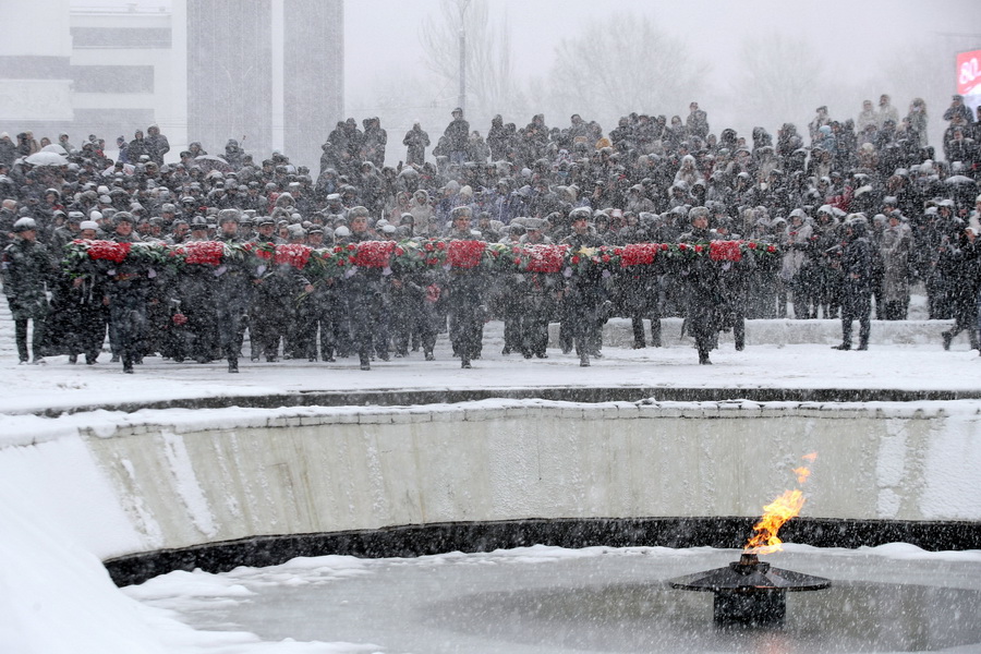 Вместе с главой региона отдать дань уважения освободителям донской столицы пришли более двух тысяч горожан. В церемонии приняли участие также заместители губернатора, руководители Законодательного Собрания области, Южного военного округа, администрации Ростова-на-Дону, городского и областного отделения совета ветеранов, курсанты и школьники.