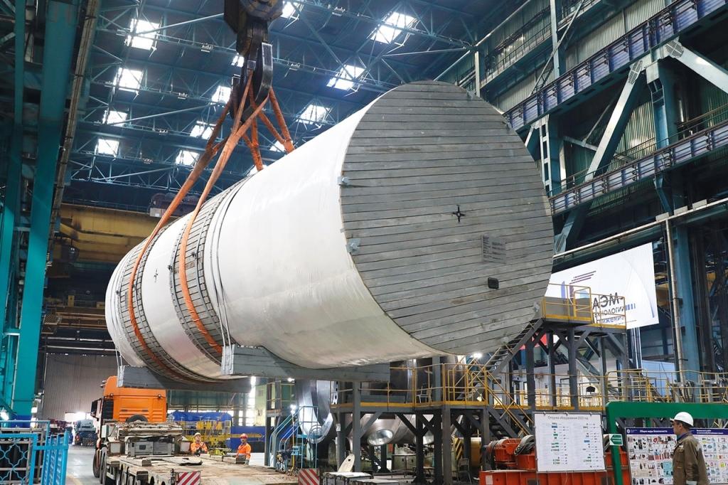 «Все элементы внутрикорпусных устройств прошли на заводе-изготовителе контрольную сборку со штатным корпусом реактора ВВЭР-ТОИ. Внутрь поочередно опускали 10-метровую внутрикорпусную шахту, весом 73 тонны, выгородку – 38 тонн – и блок защитных труб – 68 тонн. Далее реактор закрывали штатной крышкой. Общий вес изделия в сборе составил 603 тонны. При контрольной сборке все элементы полностью повторяют свое проектное положение. Это значительно сокращает сроки сборки и упрощает монтаж реакторной установки уже непосредственно на площадке строительства АЭС», – поясняет исполняющий обязанности директора Курской АЭС Андрей Ошарин.