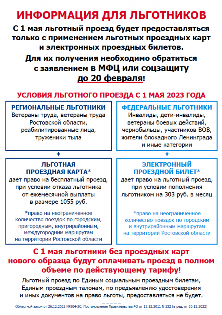Областным законом от 26.12.2022 № 804-ЗС и постановлением Правительства Ростовской области от 30.12.2022 №1199 изменены условия использования права на льготный проезд в общественном транспорте.