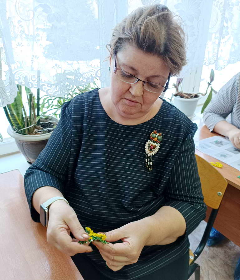 Педагог дополнительного образования Центра детского творчества Хомич Светлана Ивановна познакомила с техникой бисерного кручения, предложила выполнить декоративное изделие из бисера и стекляруса.