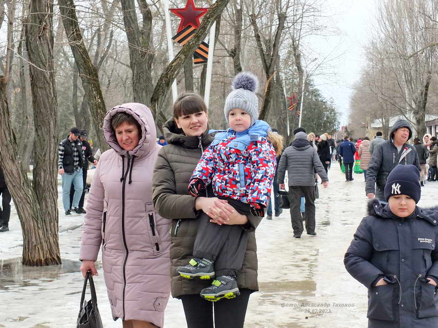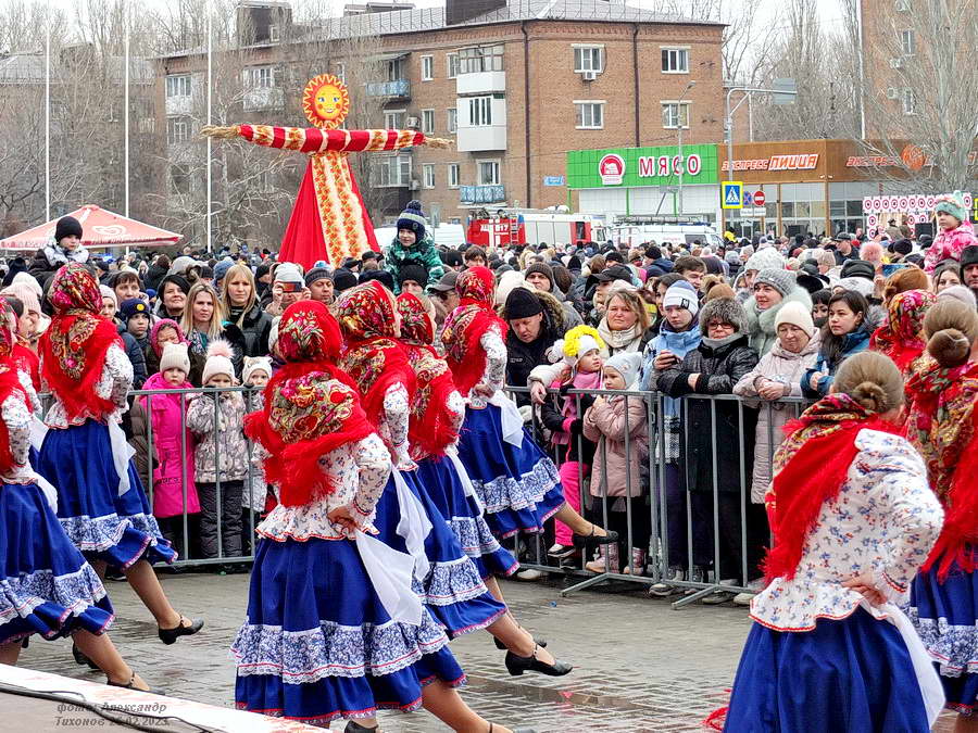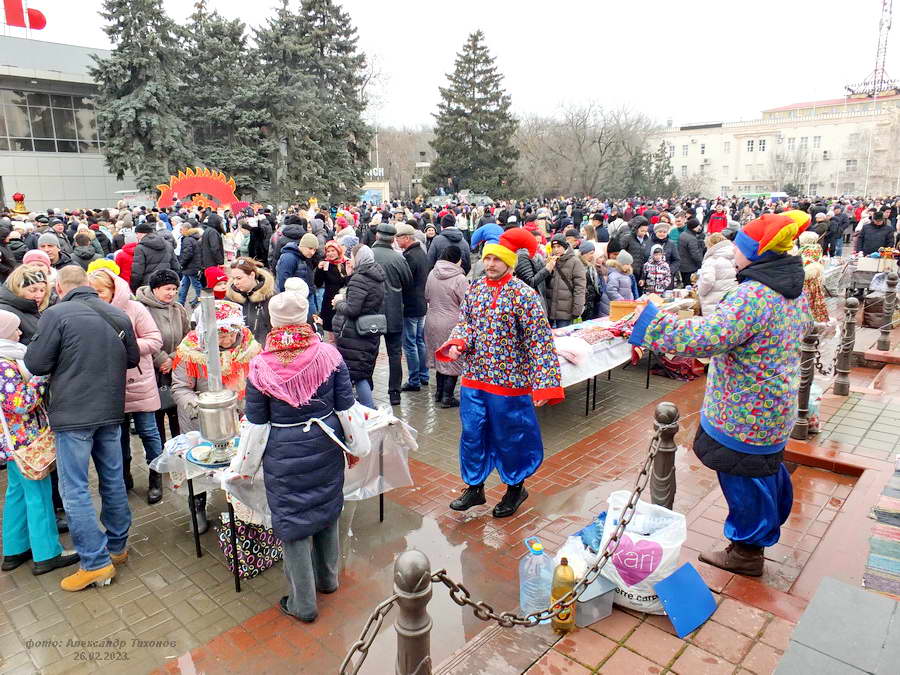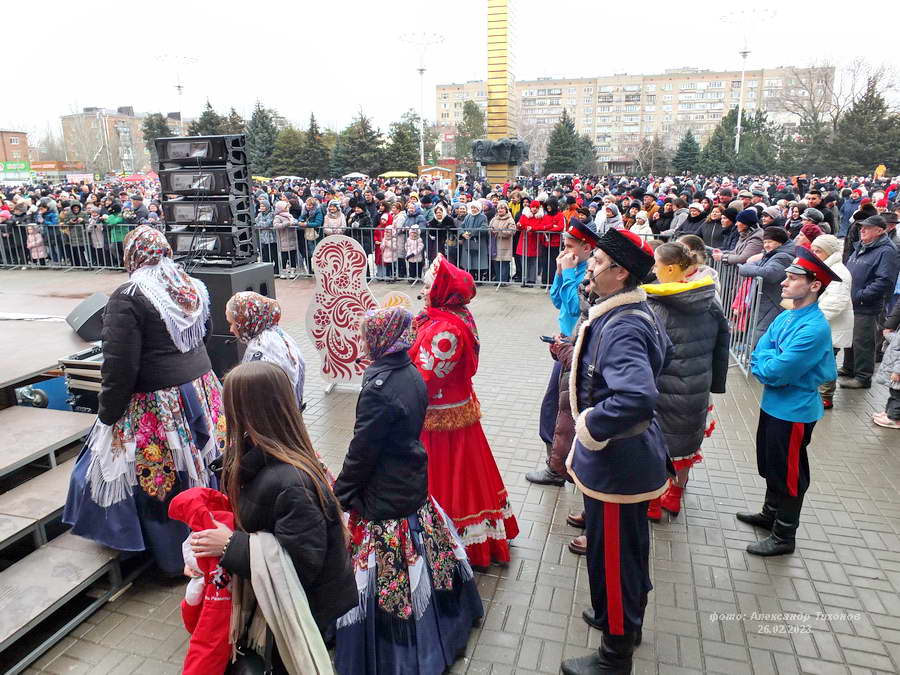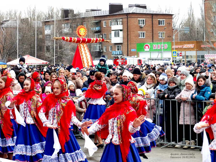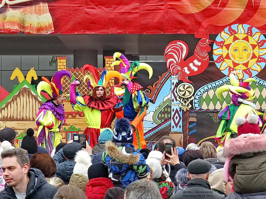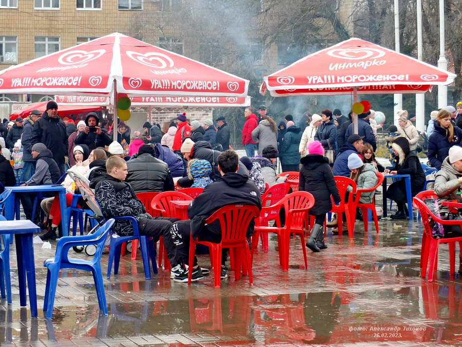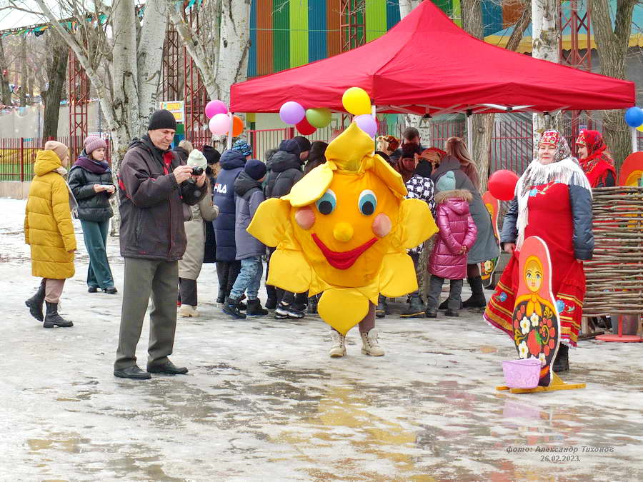 Шикарное, красивое чучело масленицы встречало лучезарной улыбкой всех входящих на праздник горожан. Жаль, что зима и легкий морозец как в субботу не задержались на один день. Всё же лужи воды на площади и ледовый дорожки в парке немного омрачали праздник проводов зимы и встречи весны. И ещё жаль, что столь красивое чучело в итоге сожгли. И если взрослым горожанам было понятна эта языческая традиция, то детям было совсем непонятно – зачем!?