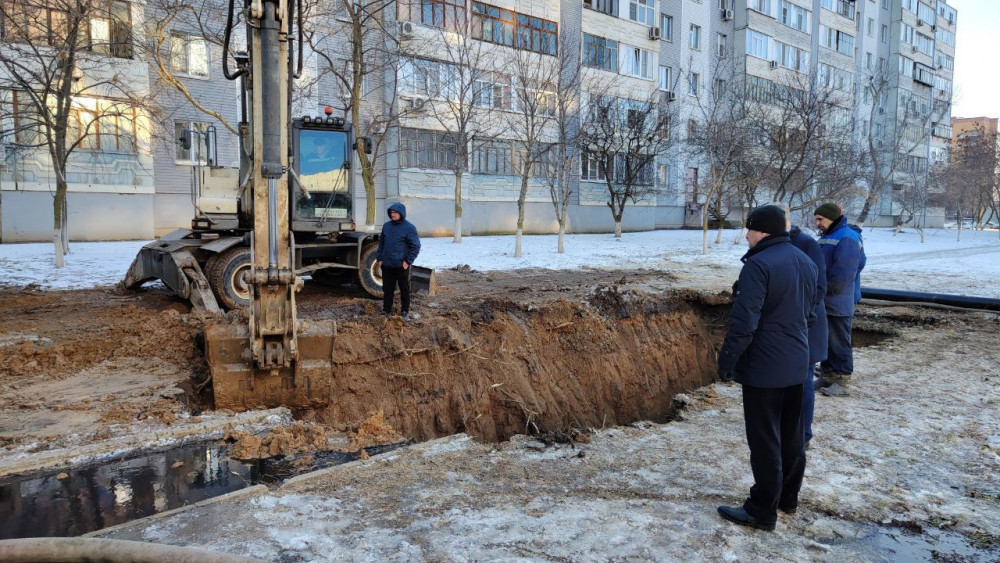 Коммунальщики приступили к работам по замене аварийного участка трубопровода. Чтобы не допустить выхода стоков наружу, была оперативно смонтирована байпасная линия между колодцами ГК489 и ГК490 в обход разрушенного участка с перекачивающим насосом. Начата разработка грунта.