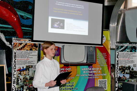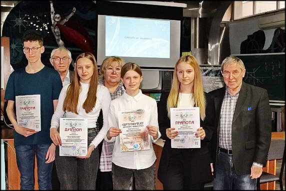 Еще двое участников поощрены грамотами. Они также учащиеся СЮТ (педагог Валерий Владимирович Кодин). Мирон Фугль представлял доклад «Наука и нанотехнологии», а Милена Зайцева рассказала экспертам об общей теории относительности.