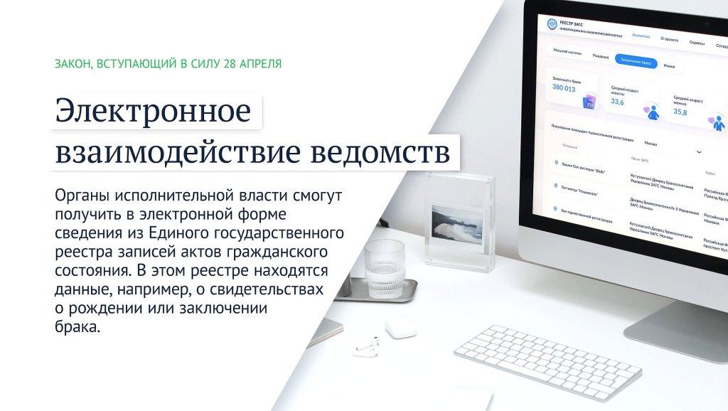 Органы исполнительной власти смогут получить в электронной форме сведения из Единого государственного реестра записей актов гражданского состояния. В этом реестре находятся данные об актах гражданского состояния, например свидетельствах о рождении или о заключении брака.
