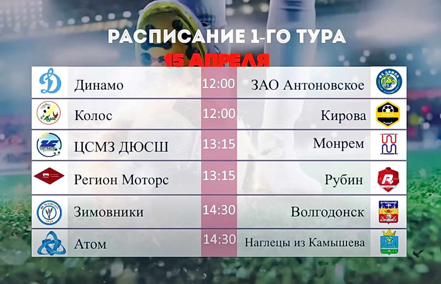 Завтра,15 апреля, пройдет первый тур чемпионата ЛФЛВ 8х8 с участием 12-ти футбольных коллективов Волгодонска и близлежащих районов. Игры пройдут и на новом футбольном поле центра загородного отдыха «Донская волна».