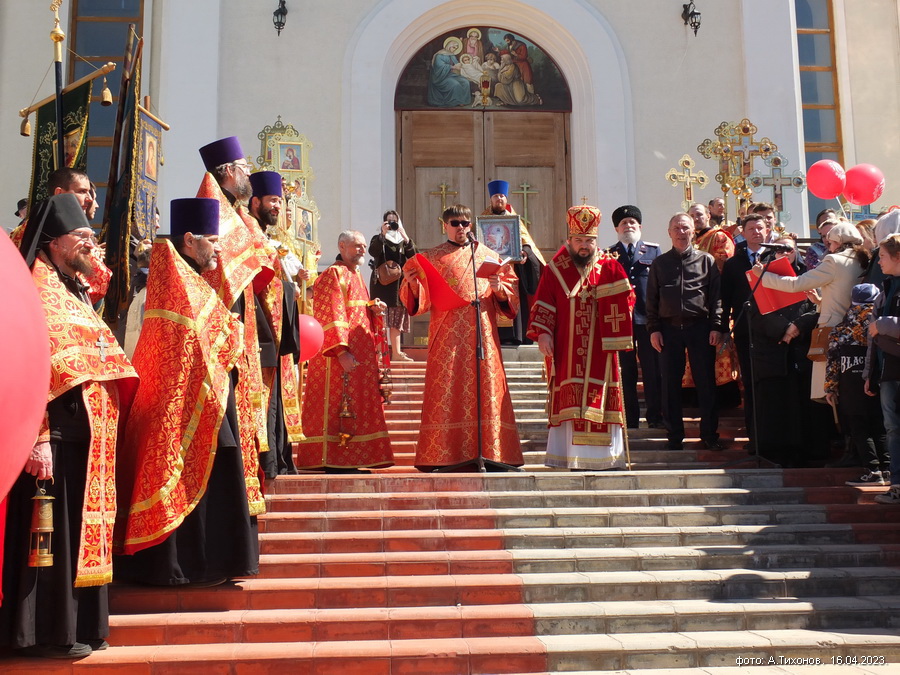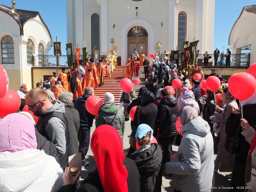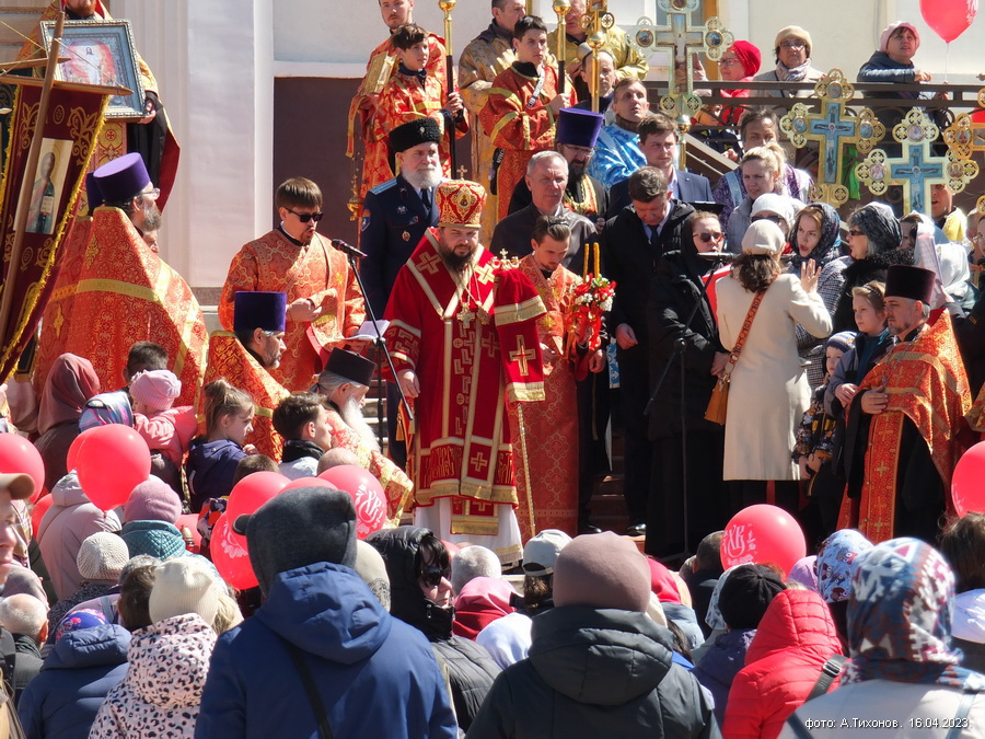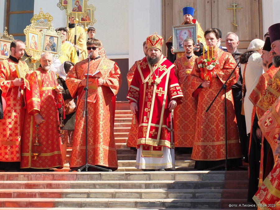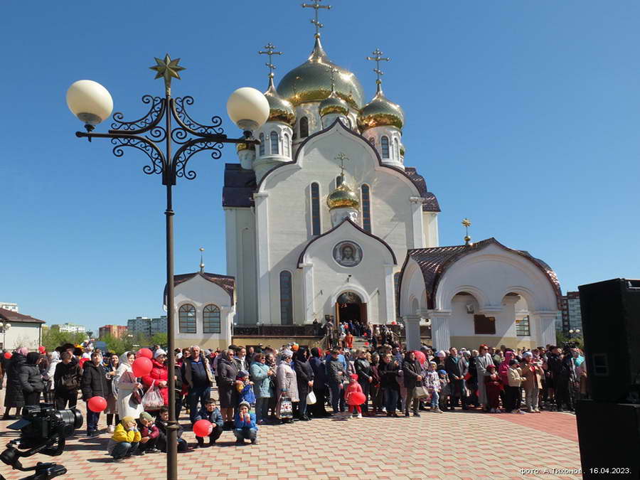 Традиционно в ночь на Пасху во всех храмах состоялись праздничные богослужения. К 12 часов дня верующие собрались у Свято-Троицкого храма, и с молитвой, колокольным звоном и радостным пасхальным приветствием «Христос Воскресе» прошли по центральным улицам к кафедральному собору Рождества Христова.