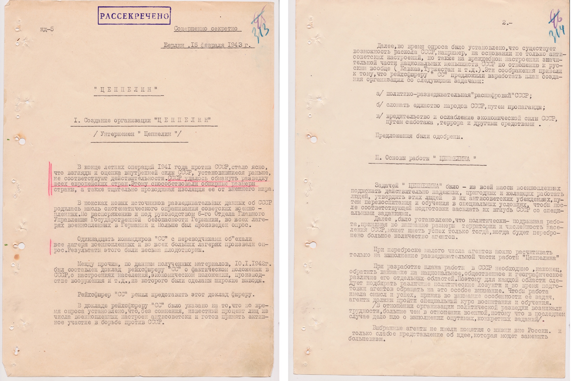 В чешском средневековом замке, где располагалось подразделение германского разведывательного органа «Цеппелин», были обнаружены материалы, содержащие планы гитлеровцев по политическому разложению Советского Союза. Фото: Центральный архив ФСБ России