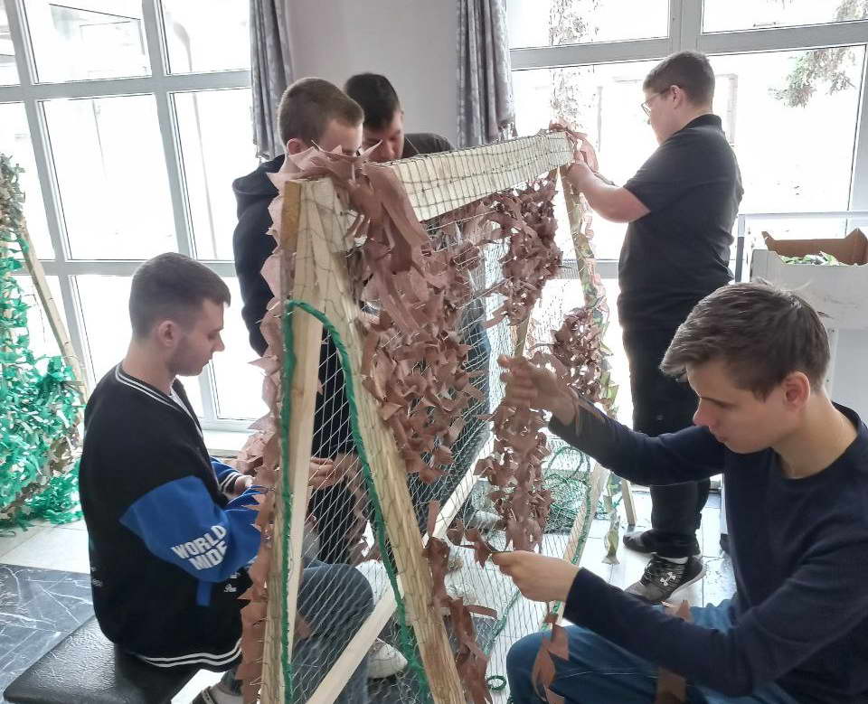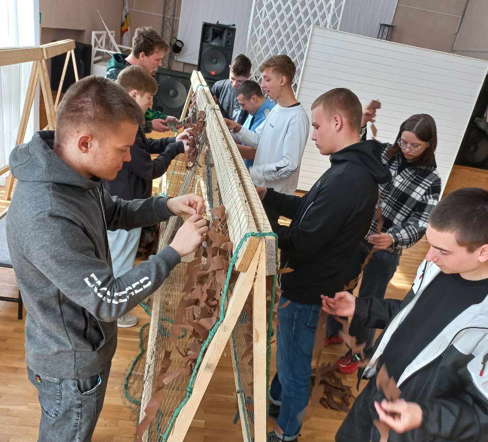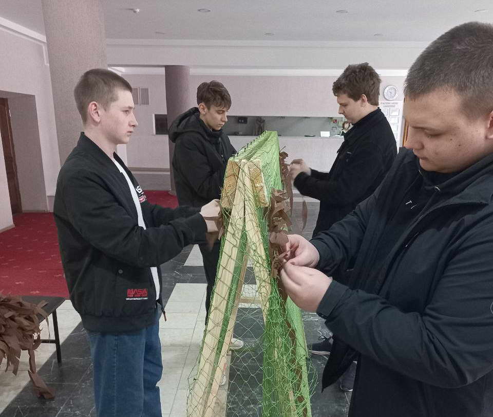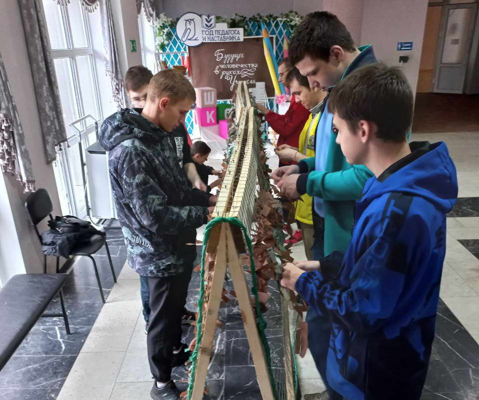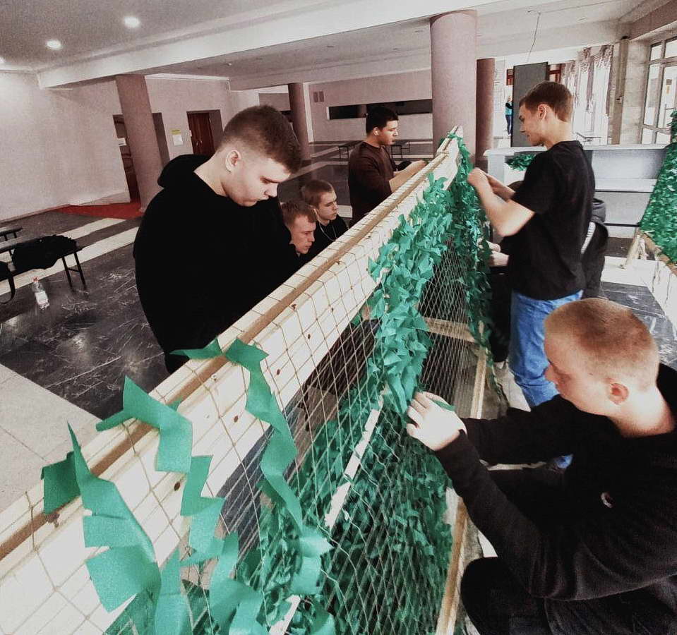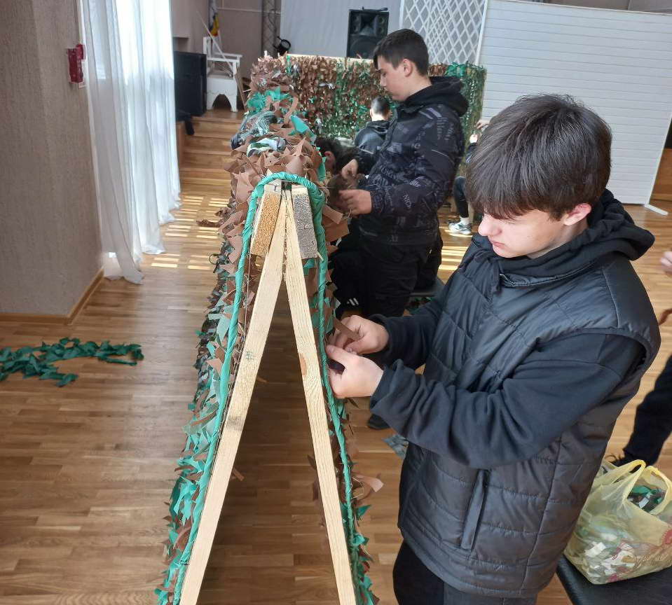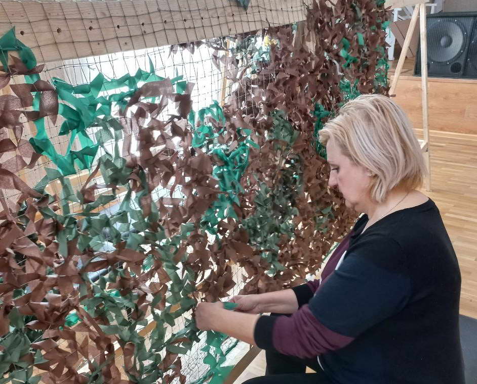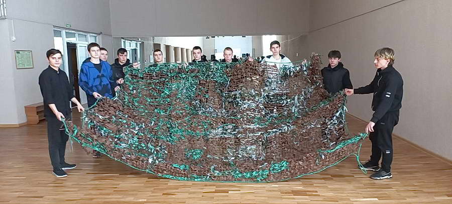 В апреле во Дворце культуры «Октябрь» продолжается акция по плетению маскировочных сетей для участников специальной военной операции с привлечением работников учреждения и неравнодушных граждан.