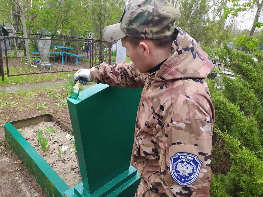 Молодые казаки ежегодно участвуют в работах по приведению в порядок могил ветеранов Великой Отечественной войны – в память об их подвиге при защите рубежей своей Родины и восстановлении разрушенной после войны страны.