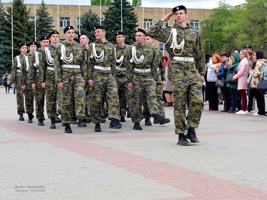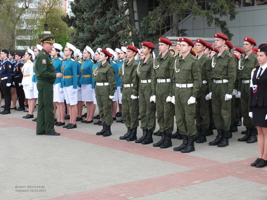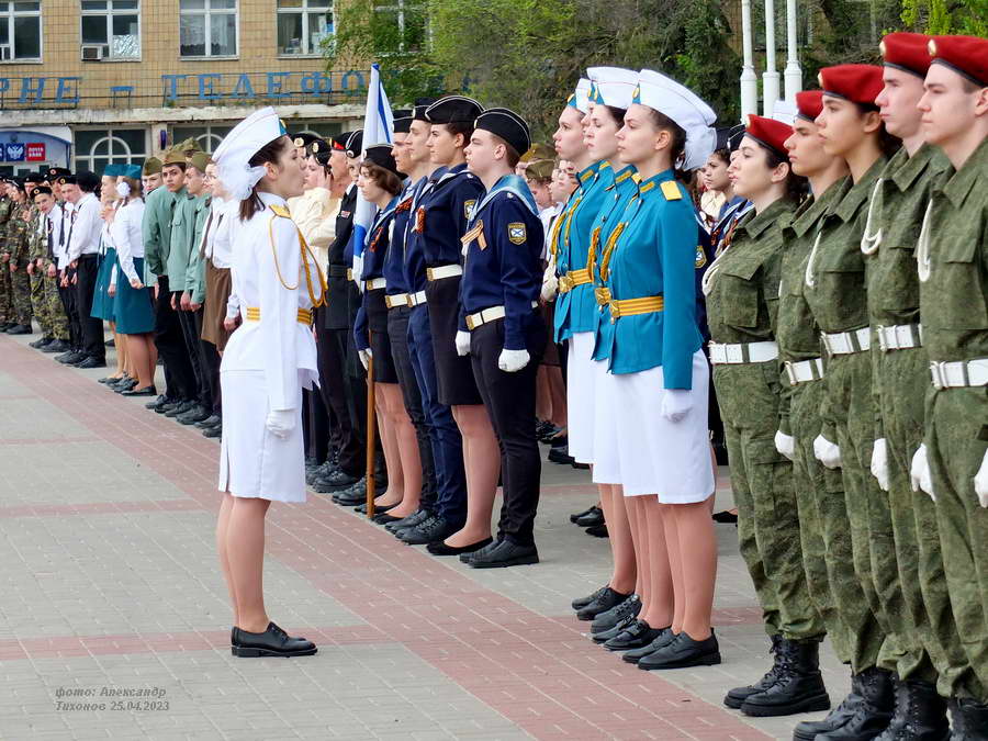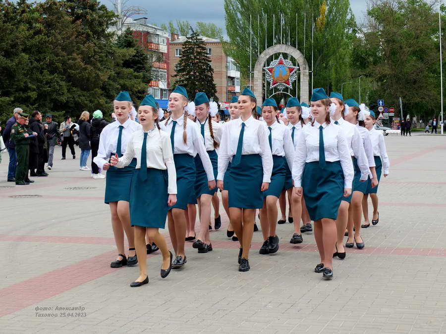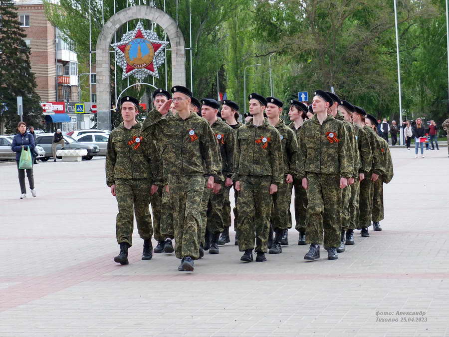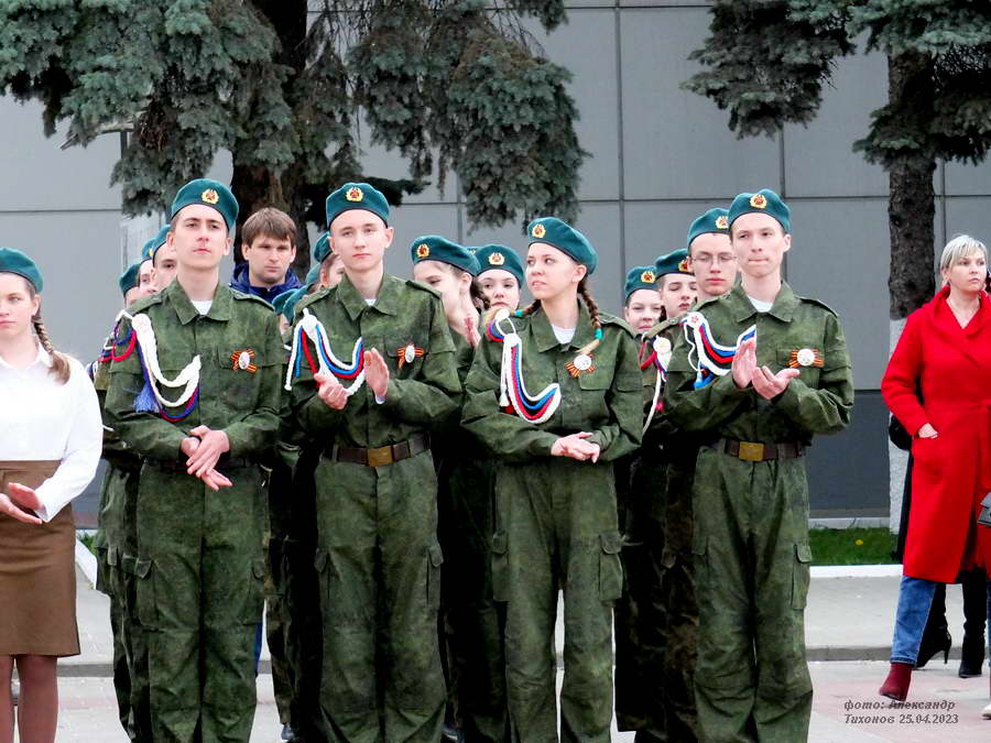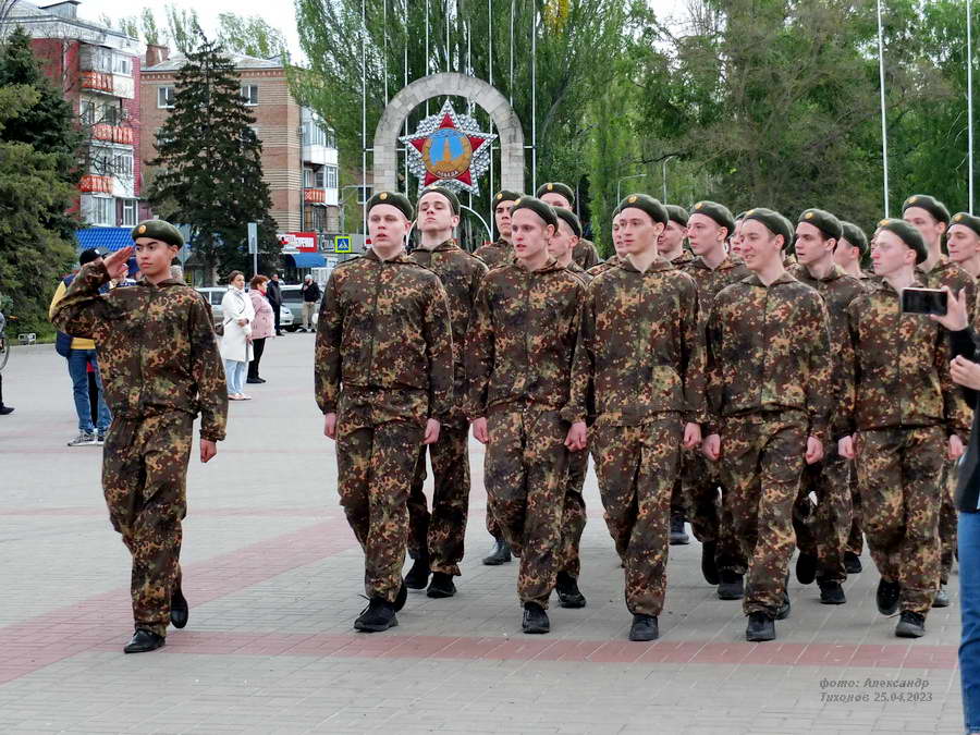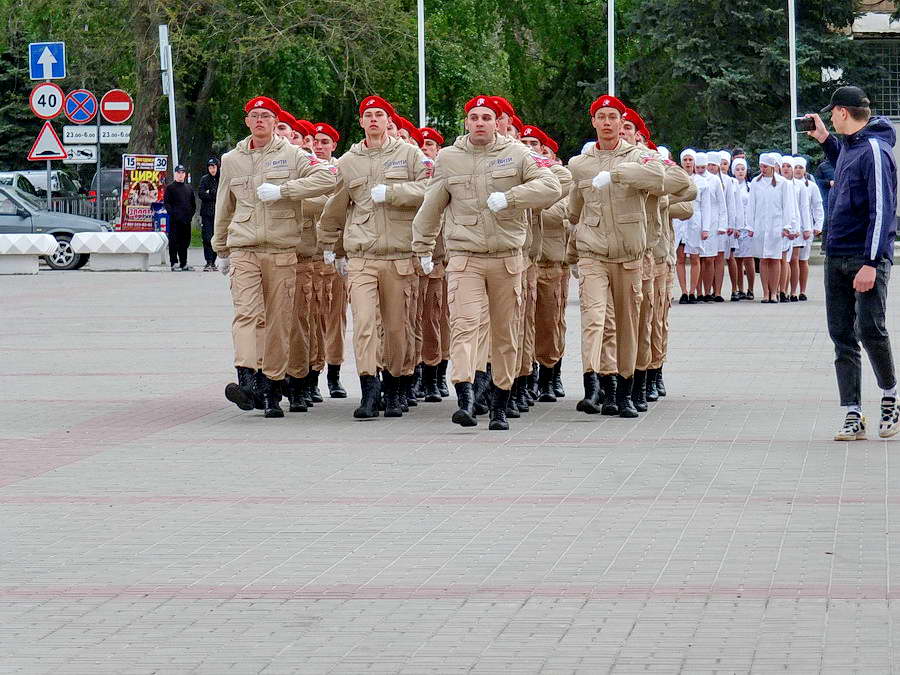 Этот смотр стал первым после пандемийных лет. Школьники и студенты старательно готовились к знаковому мероприятию – учились маршировать, разучивали песни. Отряды выстроились на площади Победы, и многие горожане останавливались, чтобы сфотографировать юношей и девушек в красивой форме.