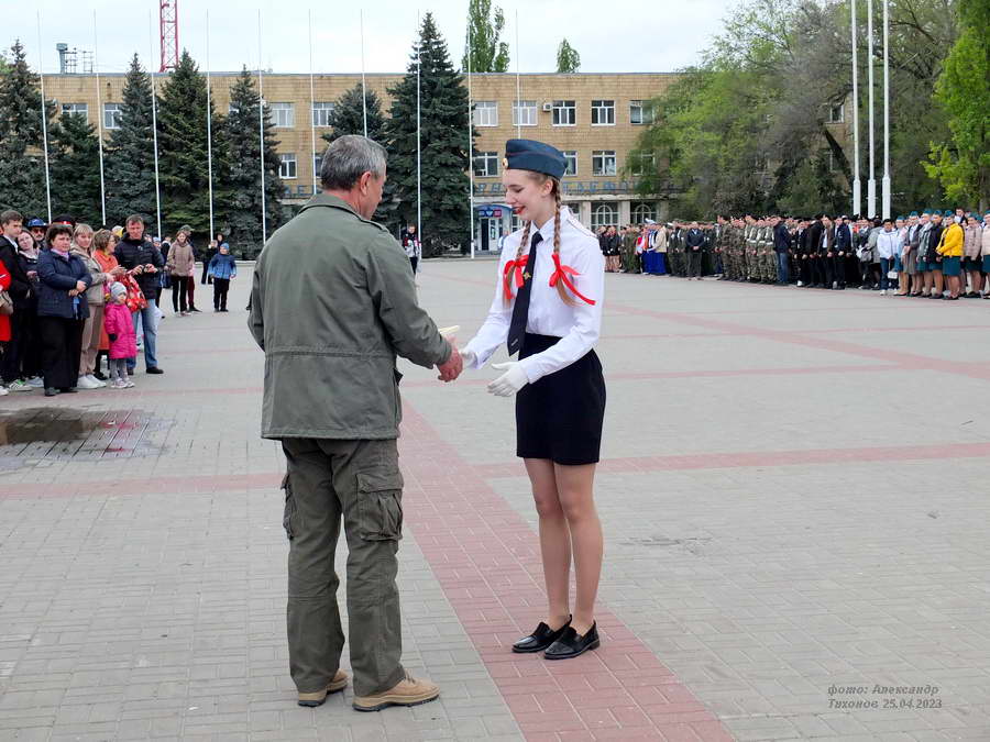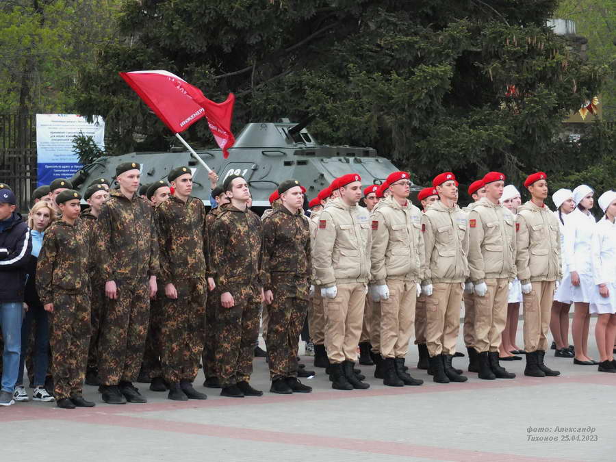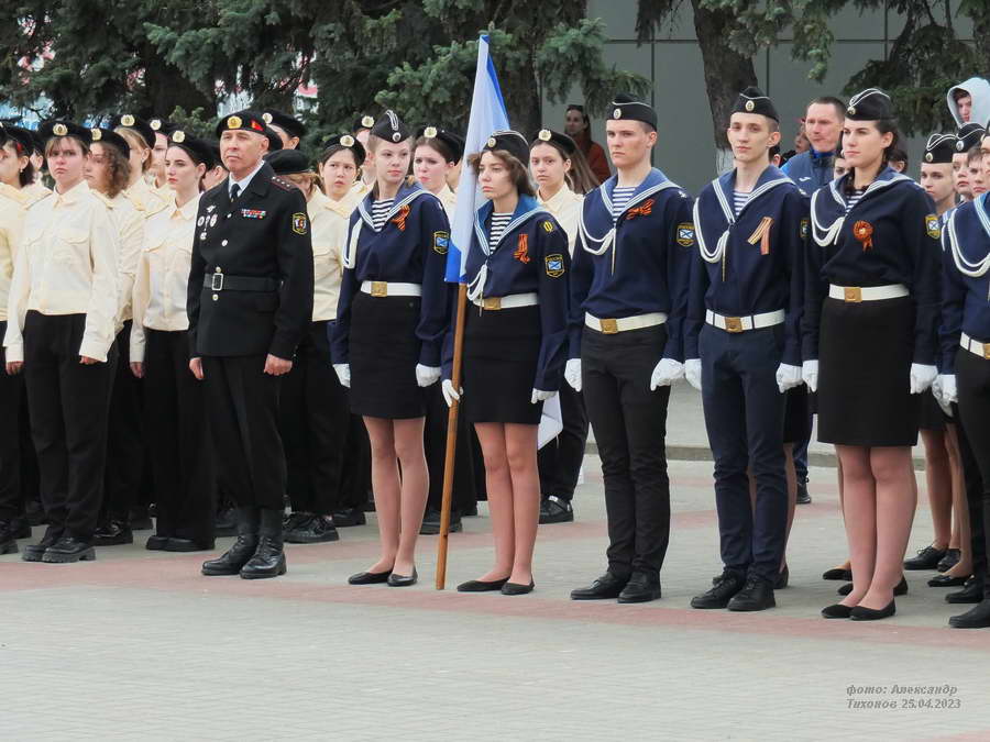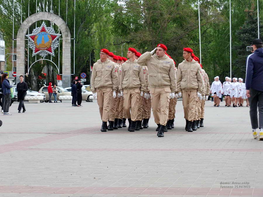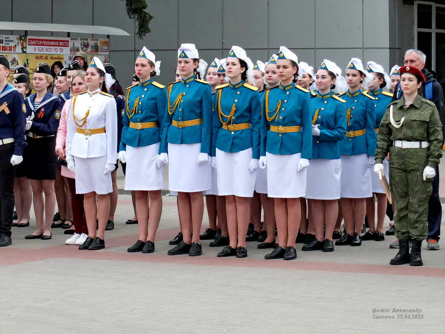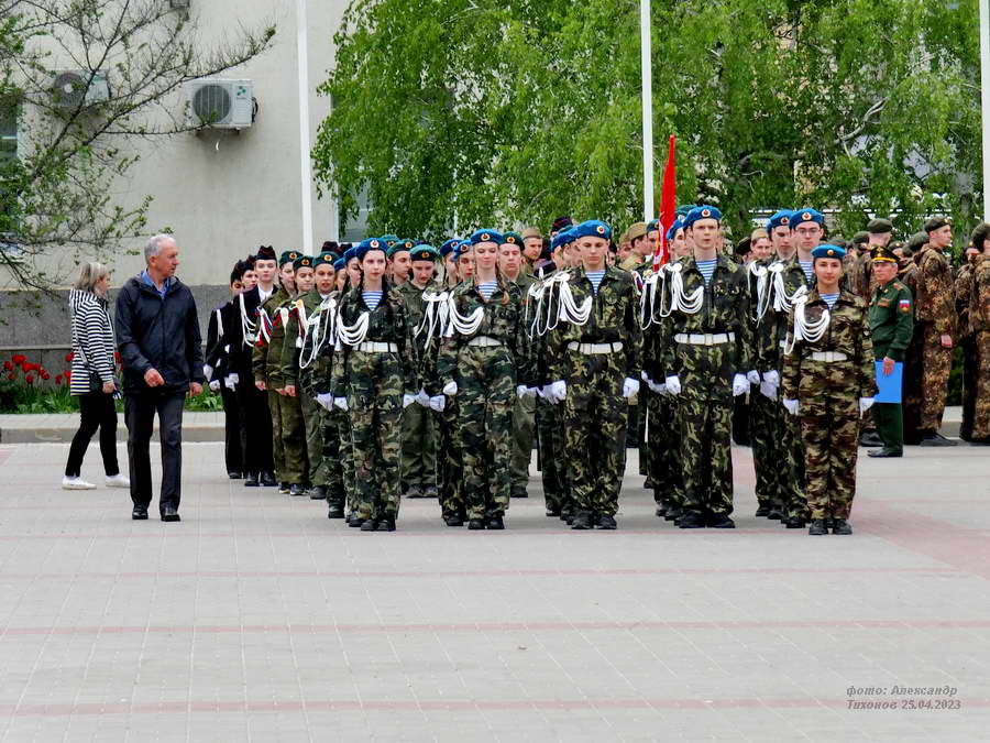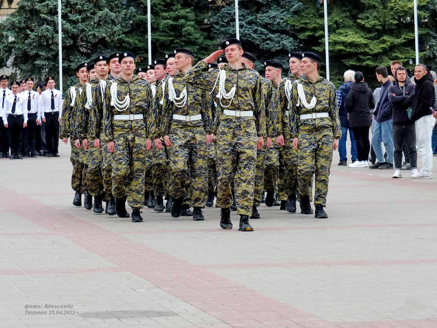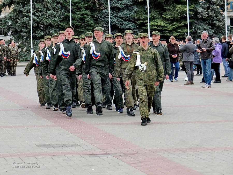 Этот смотр стал первым после пандемийных лет. Школьники и студенты старательно готовились к знаковому мероприятию – учились маршировать, разучивали песни. Отряды выстроились на площади Победы, и многие горожане останавливались, чтобы сфотографировать юношей и девушек в красивой форме.