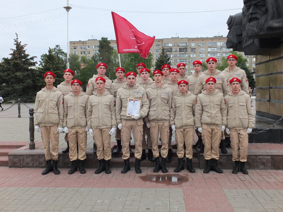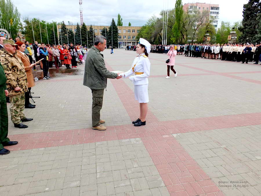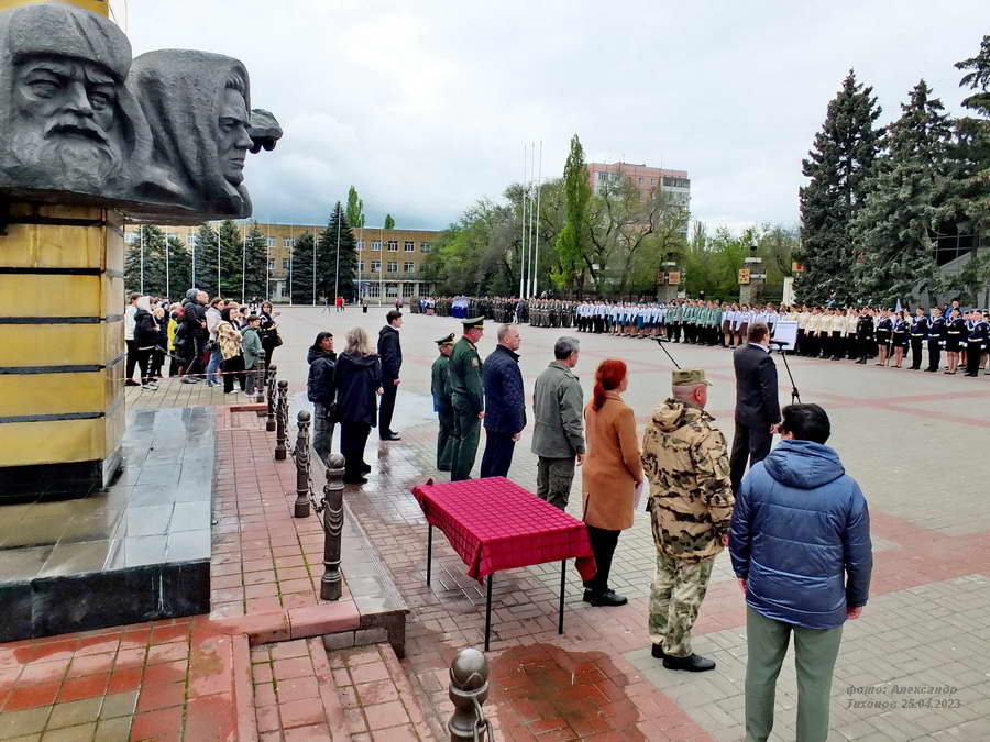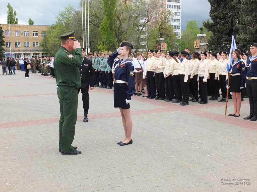 Сегодня, на площади Победы прошёл смотр строя и песни «Мы-будущее России! » посвященный Дню Победы среди учащихся образовательных учреждений, учреждений профессионального образования и молодёжных общественных объединений города Волгодонска.