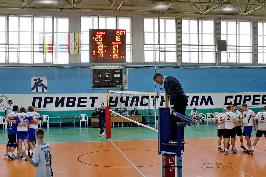 В мужском турнире за третье место встретились команды «Три богатыря» (Таганрог) и «Атом» (Волгодонск). Наша команда, приложив немало усилий смогла одолеть «богатырей» из Таганрога в четырёх партиях (29: 27, 25: 21, 17:25, 25: 16) и завоевала третье место в чемпионате Ростовской области.
