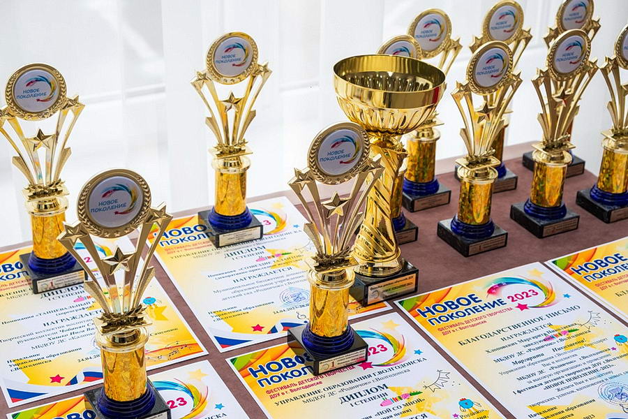 Шесть кубков фестиваля остались в Волгодонске, 7 кубков получили представители других регионов Российской Федерации. Гран-при I Фестиваля детского творчества ДОУ «НОВОЕ ПОКОЛЕНИЕ-2023» получил творческий коллектив «Сувенир» МБДОУ ДС «Родничок» г.Волгодонска (музыкальный руководитель Н.П.Котова).