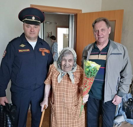 Сотрудники полиции побывали в гостях у Константина Александровича Лопаткина – ветерана Великой Отечественной войны, майора милиции в отставке, бывшего заместителя начальника штаба пожаротушения ОВРО УПО УВД Челябоблисполкома, у вдовы сотрудника ОВД Анастасии Кирилловны Иванисовой, а также у вдовы сотрудника ОВД Таисии Андреевны Семеновой. Правоохранители поздравили ветеранов с наступающим праздником и пожелали им крепкого здоровья, счастья, долгих лет жизни, а также вручили цветы и подарки