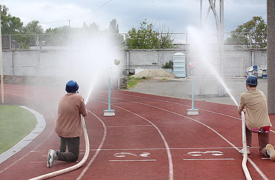 Самый зрелищный, интересный и сложный этап – «Боевое развертывание»: команды тушили условный очаг возгорания – перед юными пожарными стояла задача проложить рабочую рукавную линию от автоцистерны, а затем затушить «огонь» — сбить напором воды мячи с мишеней. И все это — быстро, организованно, как и требуется в условиях чрезвычайной ситуации.