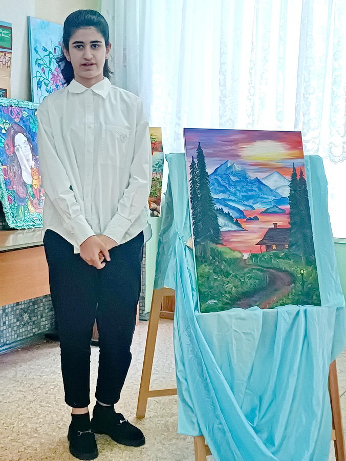 Всего членам аттестационной комиссии представлено 12 работ, выполненных в различных техниках: акриловая и декоративная живопись, холодный батик, витраж и другие. 6 выпускников подготовили выставки своих работ и провели экскурсию.