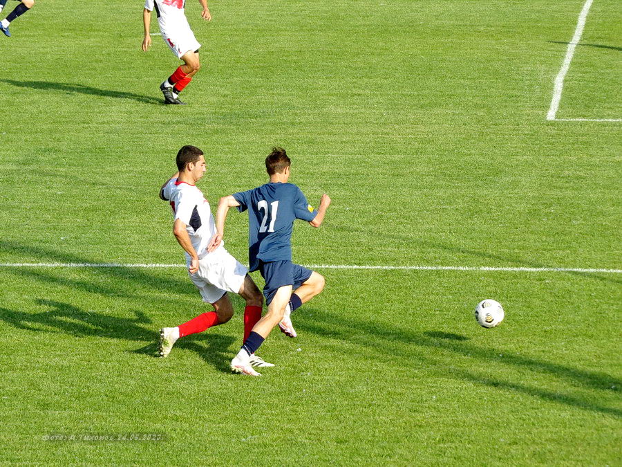 Во втором тайме гости заиграли активнее. Это и понятно -молодёжь. А вот наши стали явно уставать . Положение ещё более осложнилось когда за грубейшее нарушение, повлекшее тяжёлую травму игрока гостей был удалён с поля наш футболист. И как результат гости сравняли счёт. Матч так и завершился вничью — 1: 1