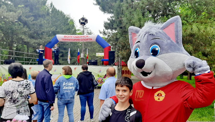 Для поддержки ребят, на спортивном фестивале присутствовал спортивный талисман города Волгодонска — «Волчонок Макар».
