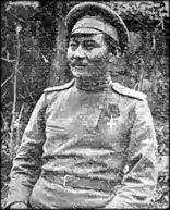 В 1926 г. в Зимовниковском районе Северо-Кавказского края зарегистрировано три станицы и десять хуторов, в которых проживало 1 758 калмыков (на фото — командир бригады РККА К.Э. Илюмжинов из ст-цы Власовской [13]). На сокращение численности донских калмыков повлияло участие в Первой мировой и Гражданской войнах, эмиграция в составе Белой гвардии, голод. Отток калмыцкого населения с территории Дона усилился после образования в 1920 г. Калмыцкой автономной области (КАО), впоследствии республики. Некоторые калмыцкие станицы и хутора исчезли с карты Донского края. По переписи 1920 г. донских калмыков оказалось всего 10 700 человек против 32 283 человек по переписи 1897 г. [6]. В ст-це Бурульской учтено 100 калмыков, в ст-це Власовской — 307, в х. Гашунский — 105, в ст-це Граббевской — 201. В х. Зюнгар жило 280 калмыков, в ст-це Кутейниковской — 188, в х. Николаевский — 69 калмыков. В ст-це Ново-Алексеевской числилось 68 калмыков, в х. Садовский — 139, в х. Стояновский — 162 калмыка [4].