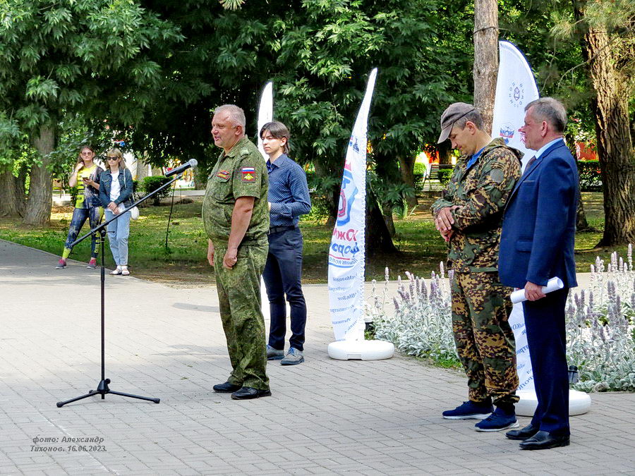 Сегодня, 16 июня 2023 года в парке Победы состоялся зональный отборочный этап регионального проекта юнармейских военно-тактических игр «Южный Форпост – Память поколения». Цель проекта – формирование у молодежи идеологии ведения здорового образа жизни и совершенствование работы по военно-патриотическому воспитанию. В городе Волгодонске мероприятие посвящено памяти Героя Российской Федерации Александра Антонова (Кубок имени Героя России Александра Антонова), погибшего при исполнении воинского долга в зоне специальной военной операции. Он совершил подвиг и ценой своей жизни остановил колонну противника, тем самым сорвав наступление украинских военных.