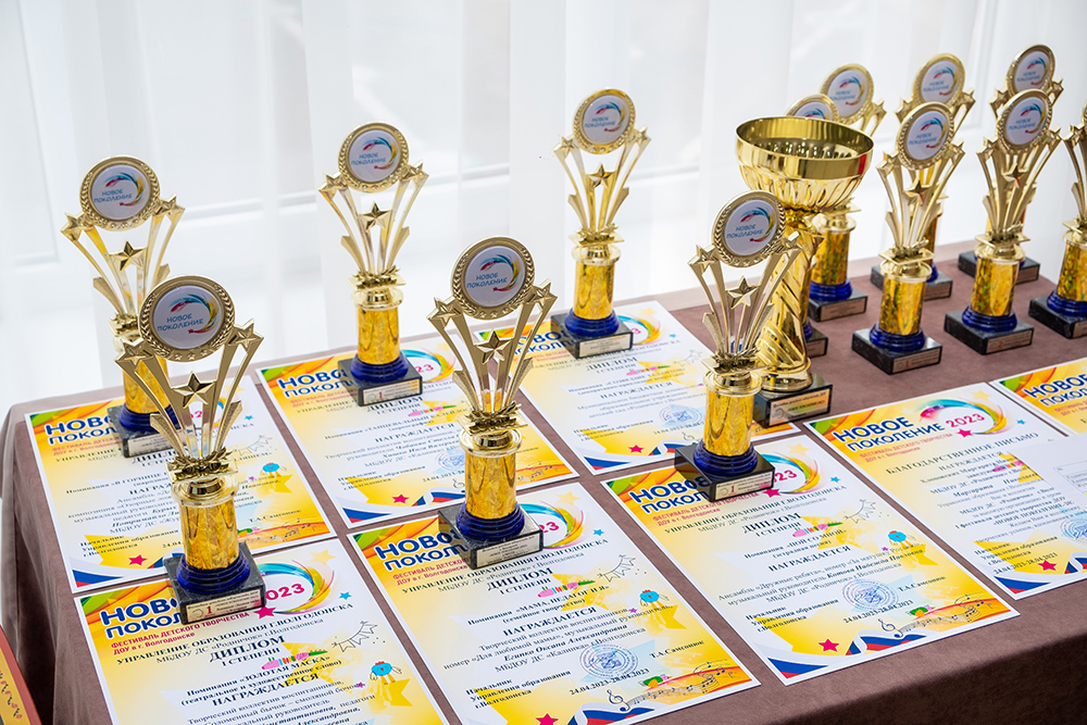 Шесть кубков фестиваля «Новое поколение-2023» и благодарственные письма управления образования Волгодонска были вручены победителям из нашего города. Семь наград отправлены в другие регионы. Гран-при фестиваля детского творчества «Новое поколение-2023» получил коллектив «Сувенир» детского сада «Родничок» (музыкальный руководитель Надежда Котова).