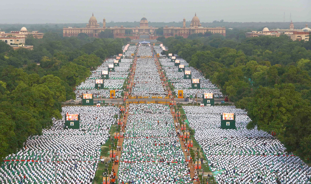 Первый Международный день йоги установил два мировых рекорда Гиннесса. Официальное празднование Дня йоги, организованное правительством Индии, стало самым большим собранием йоги за всю историю и самым большим смешением национальностей. Так же дипломаты со всего мира собрались в Раджпате, Нью-Дели, чтобы стать свидетелями создания истории.