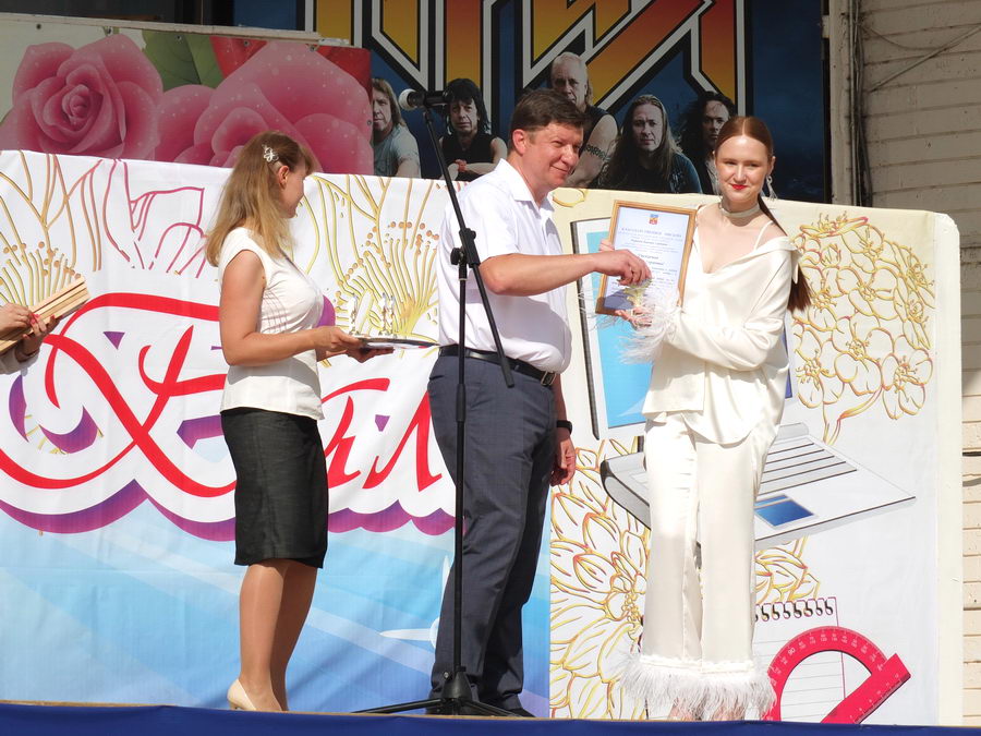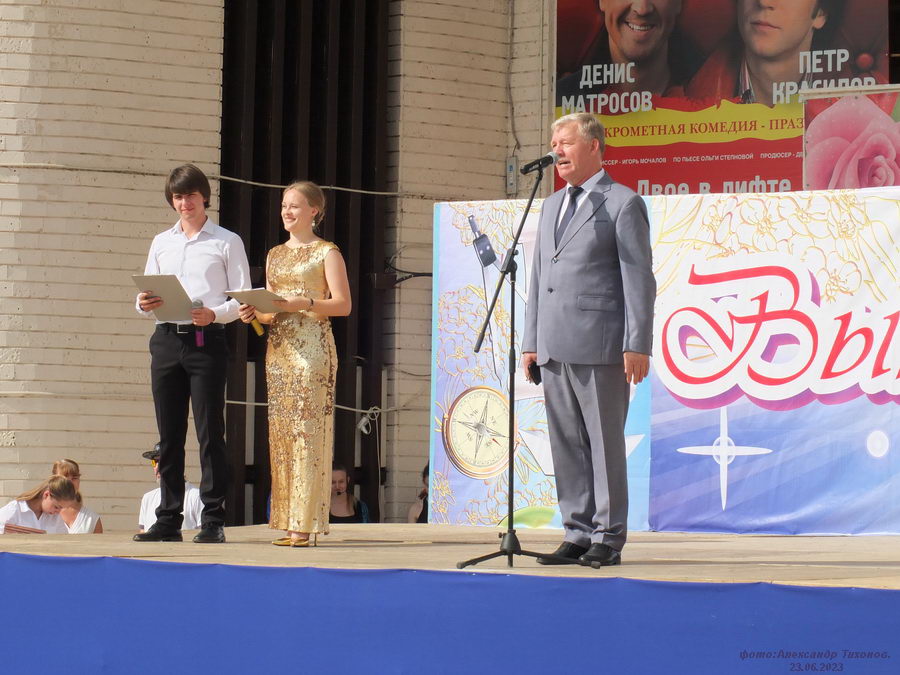 Перед выпускниками выступили и пожелали успешно поступить в вузы, уверенно добиваться своих целей в жизни – глава администрации Волгодонска Сергей Макаров, председатель Волгодонской городской Думы – глава города Волгодонска Сергей Ладанов и начальник управления образования Волгодонска Татьяна Самсонюк. Они вручили лучшим выпускникам за успехи в учебе благодарственные письма .