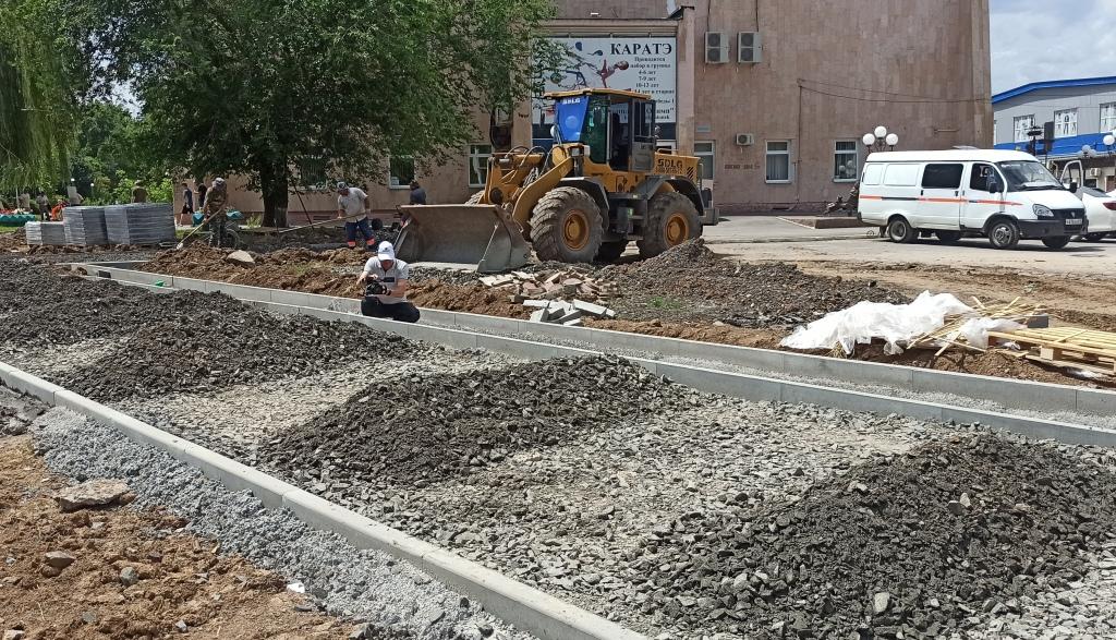 Пока здесь идет отсыпка гравием пешеходных дорожек, установка бордюрного камня, выравнивается и готовится к асфальтированию место под парковку. Работы идут активно, на месте трудятся рабочие и техника. По контракту, к 15 июля подрядчик – ИП Галеян – должен работы завершить.