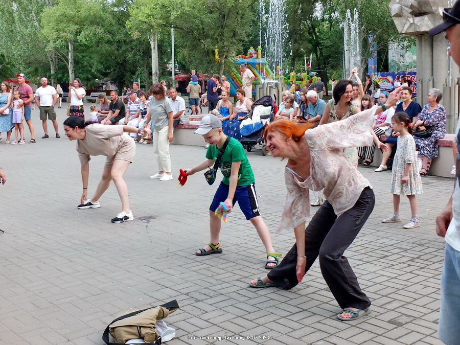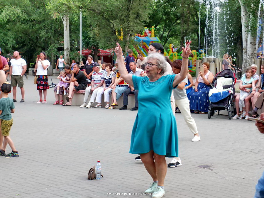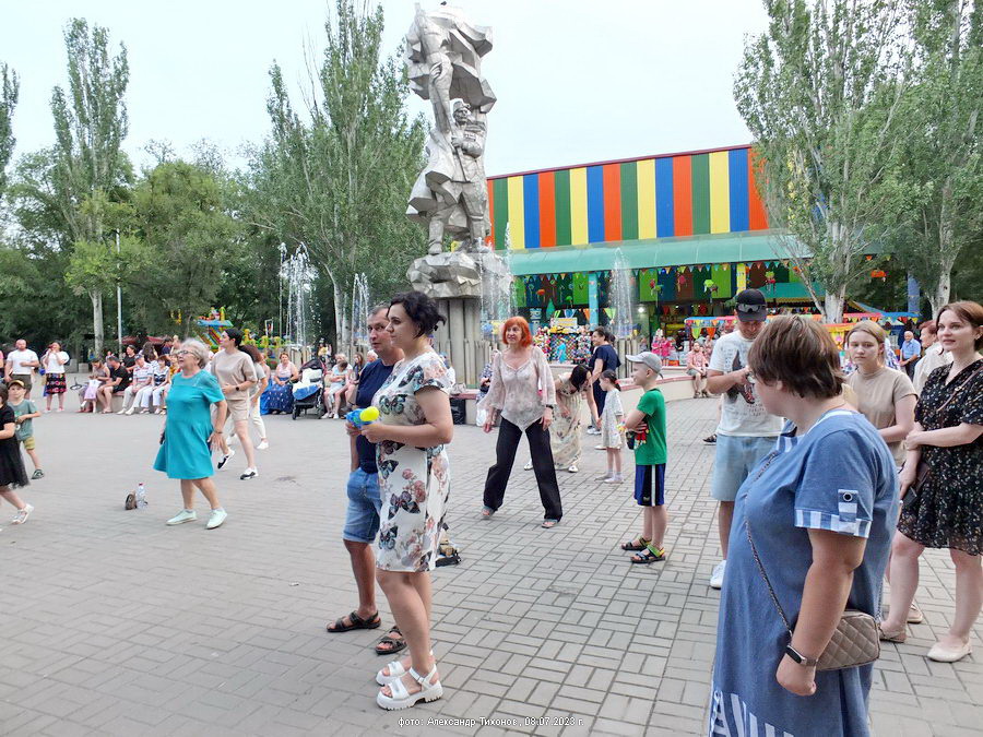 Праздничные мероприятия в этот день прошли и в парке Победы на площади у фонтана. В этот же день , после долгого перерывая заработало колесо обозрения.