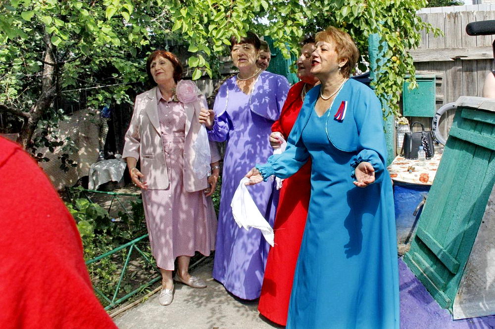 Организаторы подготовили для Клима Николаевича и творческое поздравление. Вокальный коллектив исполнил под гармонь песни военных лет.