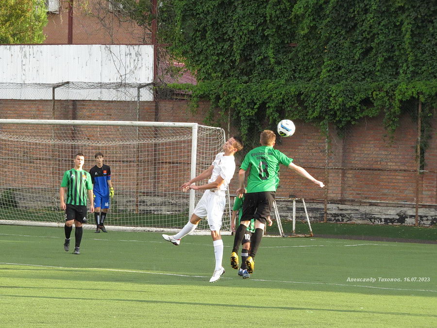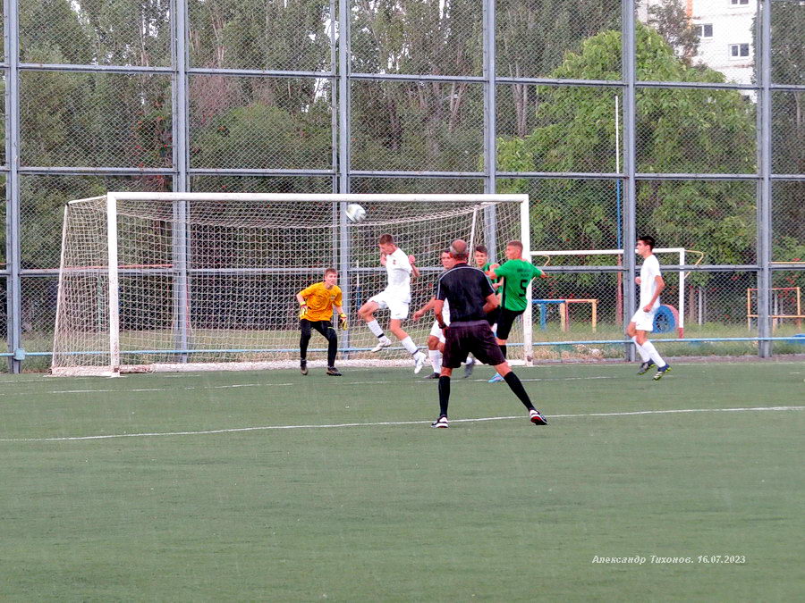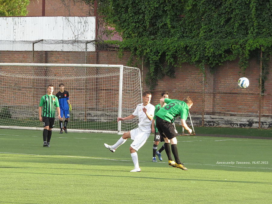 Отметим, что практически весь первый тайм прошел под дождём, но тем не менее команды показали хорошую, равную игру было несколько опасных моментов и у ворот волгодонцев и у ворот гостей. Но первыми успеха добились горожане. В втором тайме игра шла с переменным успехом и завершилась победой волгодончан со счётом 6: 3.