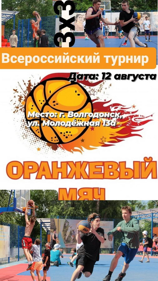 12 августа на ул.Молодëжная 13а пройдëт Всероссийский турнир по баскетболу 3х3 » Оранжевый мяч » .