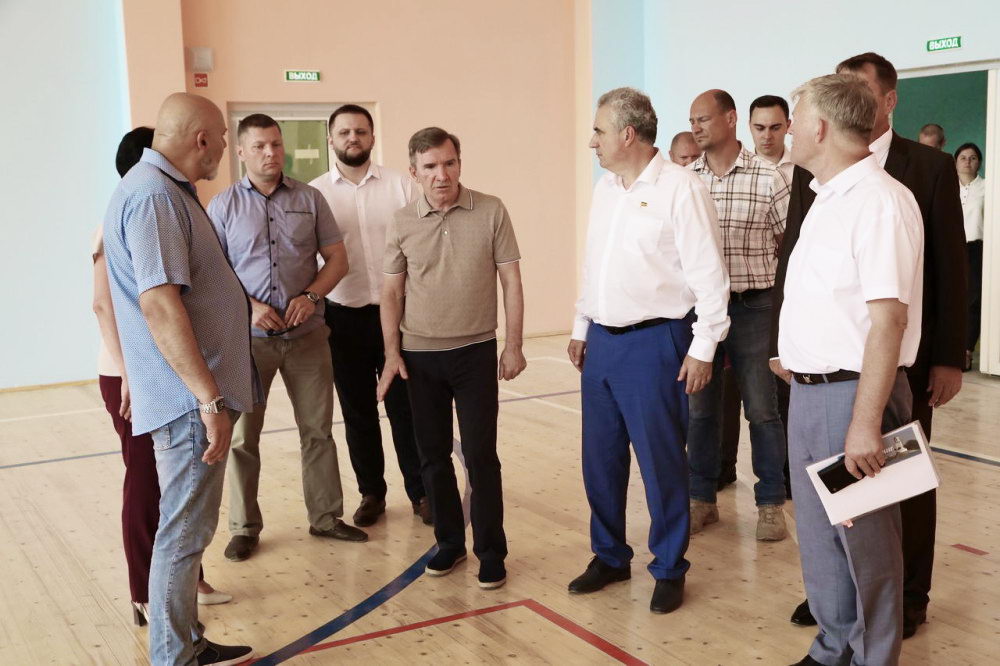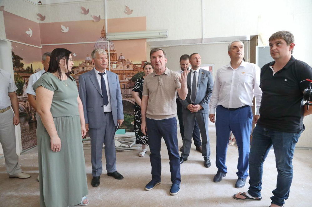 Далее Игорь Гуськов в сопровождении главы администрации Волгодонска Сергея Макарова проинспектировал строящуюся школу в районе В-9.