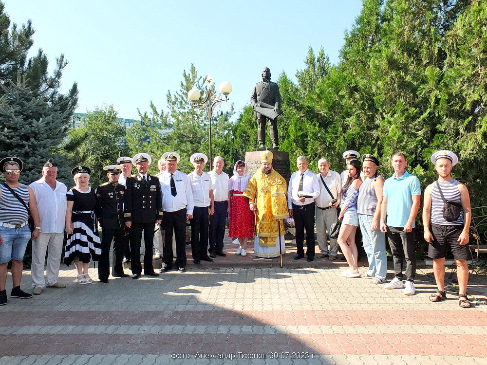 Моряки начали своей праздник со сбора и торжественного молебна в храме Рождества Христова. Затем прошло возложение цветов к памятнику знаменитого флотоводца Фёдора Ушакова.