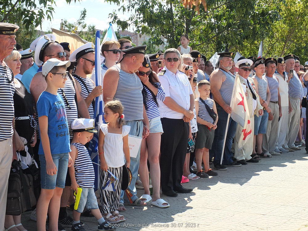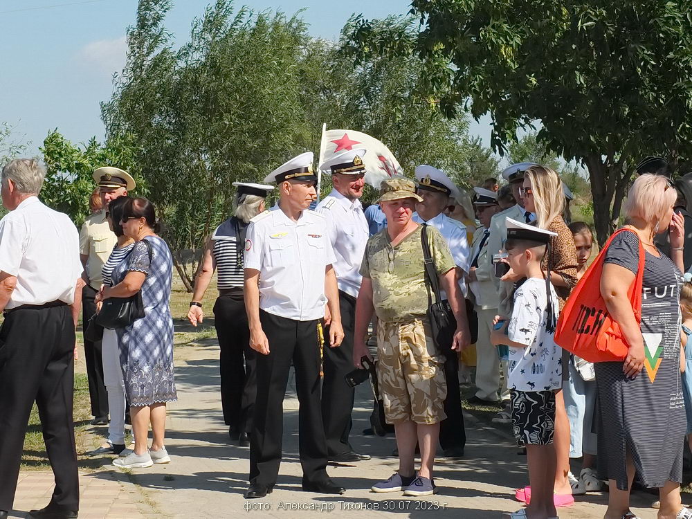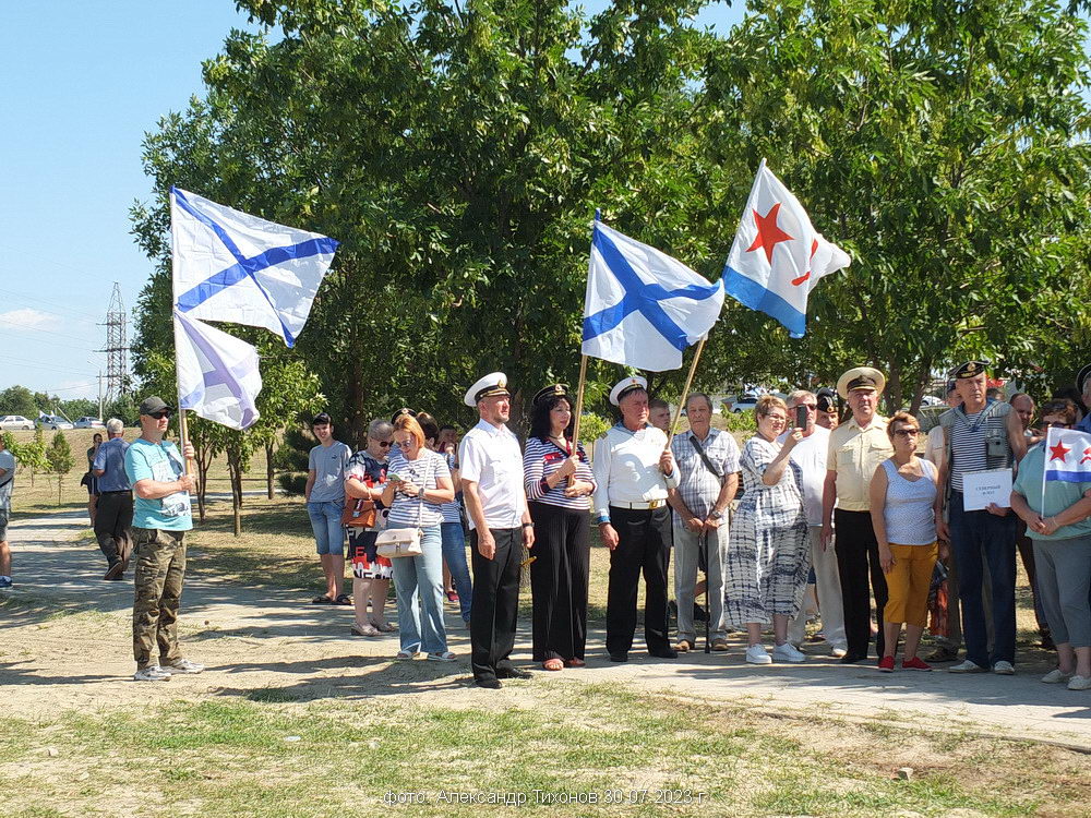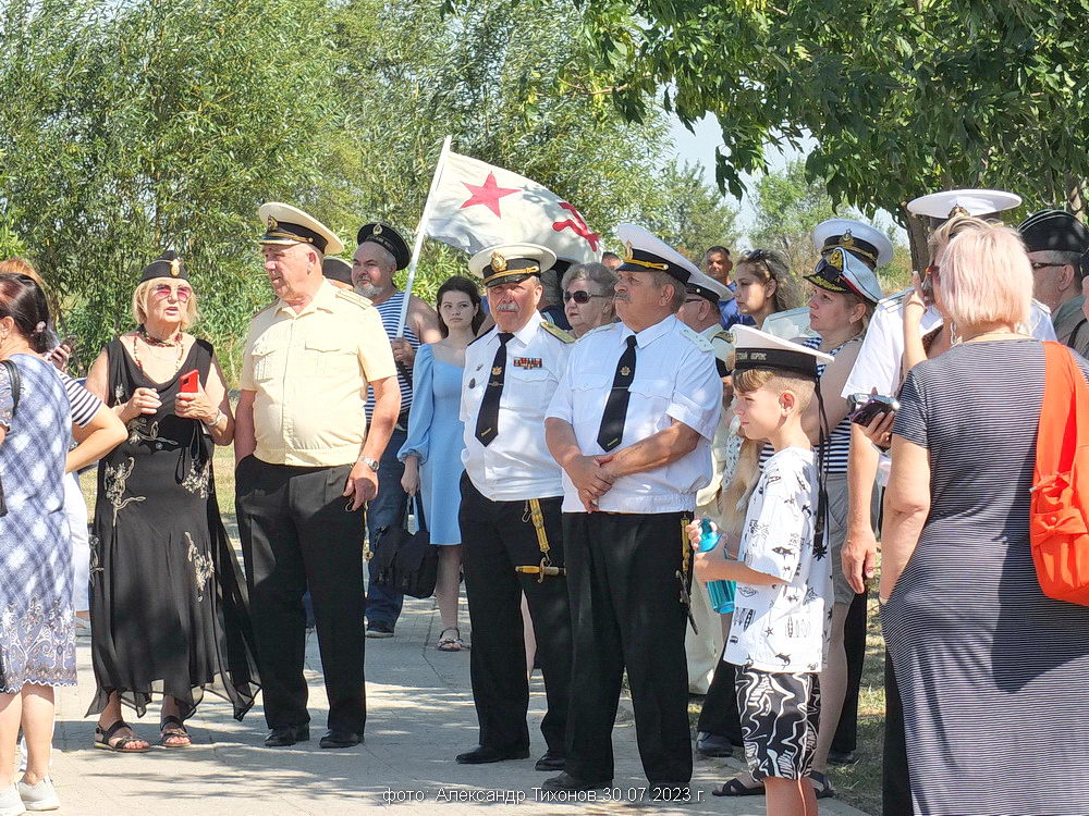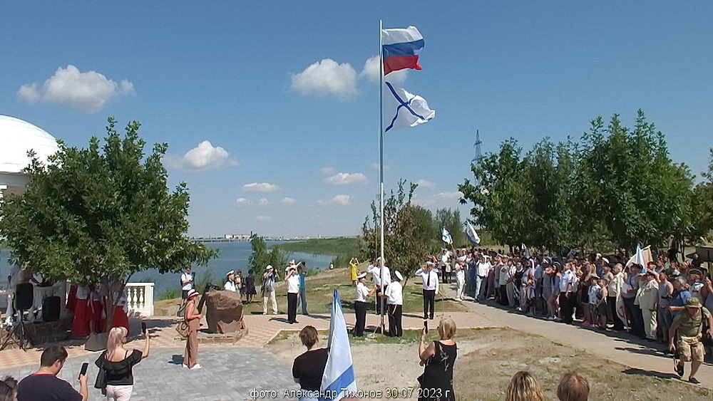 Затем прошло торжественное построение на набережной сквера генерала Бакланова и подъём государственного и Андреевского флагов.