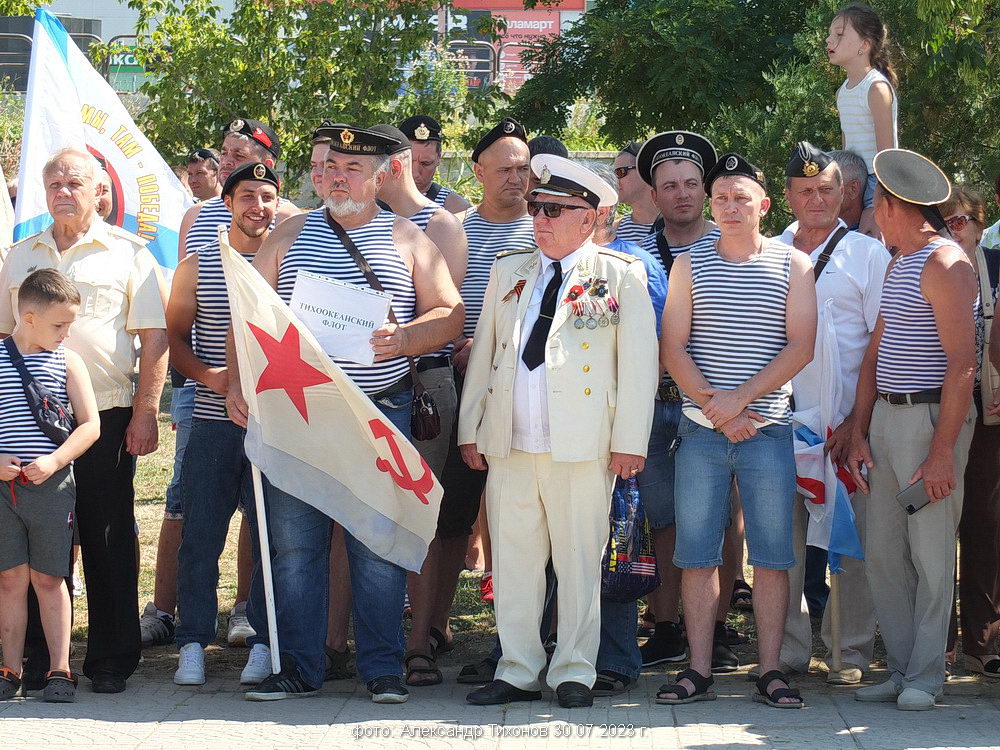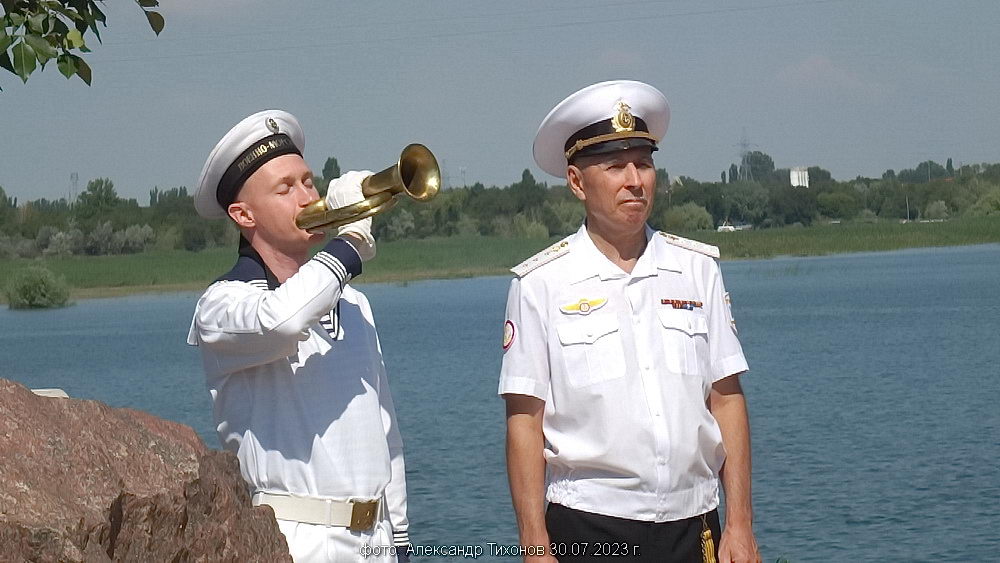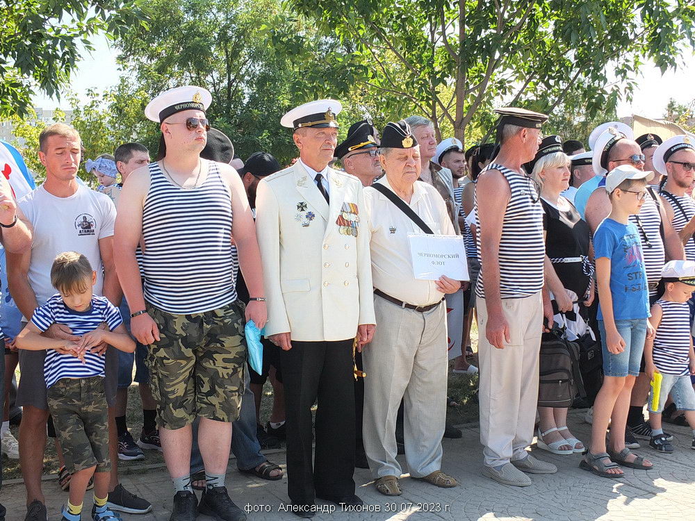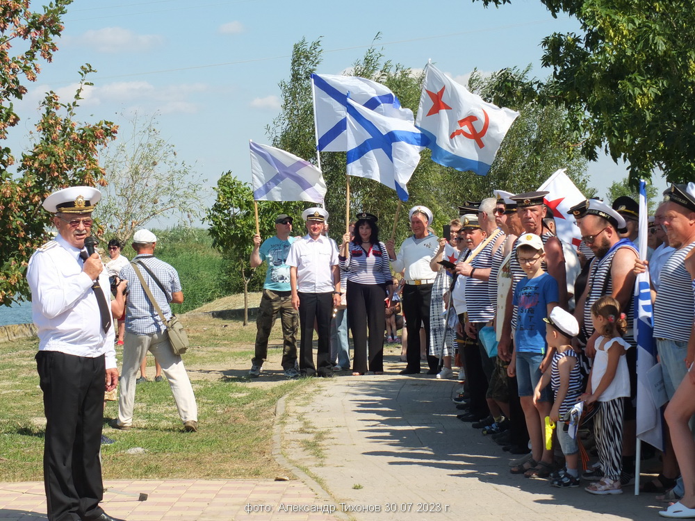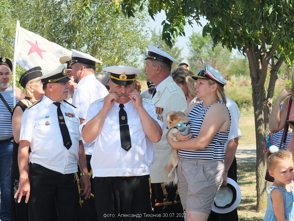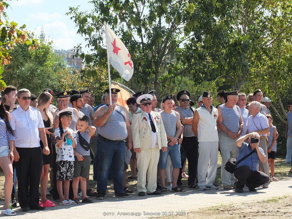 Затем прошло торжественное построение на набережной сквера генерала Бакланова и подъём государственного и Андреевского флагов.