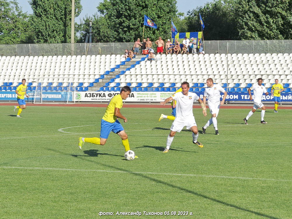 Сегодня, 5 августа на стадионе «Труд» прошёл очередной матч чемпионата области по футболу в высшей лиге между командами ф/к «Волгодонск и «ф/к им. Ахламова» из посёлкка Новоприморский Неклиновского района.