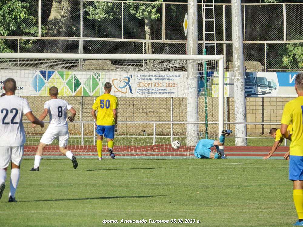 А через 15 минут игры во втором тайме игрок «Волгодонска» нарушает правила в своей штрафной. Пенальти! И хотя наш вратарь угадал направление удара дотянуться до мяча ему, увы не удалось. 1: 2. А затем гости смогли ещё разок огорчить нашу команду . В итоге матч завершился со счётом 1: 3 в пользу команды из посёлка Новоприморский.