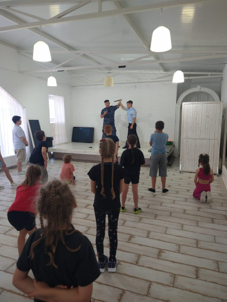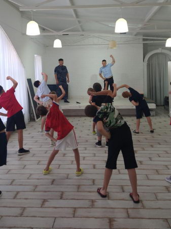 Воспитанников Центра посетили старший инспектор ОРЛС МУ МВД России «Волгодонское» капитан полиции Олег Усачев и старший инспектор ОРЛС МУ МВД России «Волгодонское» старший лейтенант полиции Роман Тутов. В беседе с ребятами полицейские призвали всех заниматься физической культурой и вести здоровый образ жизни, после чего провели оздоровительную зарядку, а также показали простые приемы самообороны.